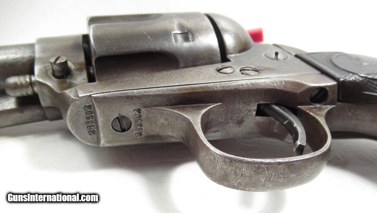 Description: Colt Single Action Army Revolver; Serial No. 283502; .32 W.C.F. (32/20) Caliber with 5 ½” Barrel and Blue Finish; Shipped to Walter Tips, of Austin, Texas; Factory Letter on Order Will Confirm Above Configuration; Only traces of Original Metal Finish Remain; Worn Hard Rubber Grips; Decent Action and fair Bore (fairly Strong but pitted); Decent 116 Year-Old Texas Cowboy Colt Revolver; See All Photos for Condition; No Texts; Call (254)541-5765 or Email Only; PERSONAL PROPERTY of Harold Wieser; Price: $2,475 + $45 S&H Via USPS PRIORITY MAIL; Payment Address: Harold Wieser - 1466 U.S. Hwy 77 - Rosebud, TX 76570; SEND PAYMENTS VIA USPS PRIORITY MAIL; BEWARE of SCAMS!!! – DO NOT SEND MONEY or CORRESPONDENTS ELECTRONICALLY UNLESS YOU HAVE SPOKEN to HAROLD WIESER FIRST! 254-541-5765 SOLD |
