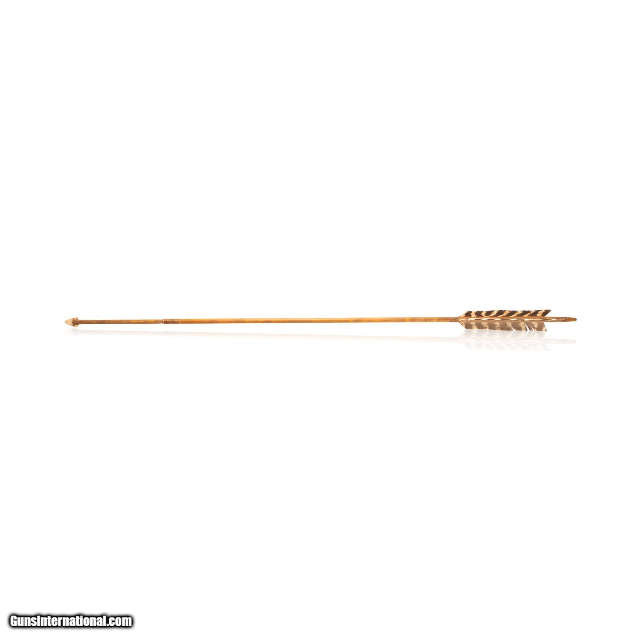 Description: Three arrows with turkey feathers and stone tips. Used as props in the movie "The Last of the Mohicans". Made by Paul Nusbaum. Would make a great addition to a movie prop or movie collection, or would display nicely in a Southwestern style home. Size: longest 24". Family Owned & Operated Cisco’s Gallery deals in the rare, exceptional, and one-of-a-kind pieces that define the history of America and the Old West. Our pieces range from American Indian to Cowboy Western and include original items of everyday life, commerce, art, and warfare that tamed America’s frontier. Our 14,000 square foot gallery opened in 1996 in beautiful Coeur d’Alene, Idaho. Personal Service Cisco’s operates on old fashioned values – honesty and integrity, and all of our items are backed by our money back guarantee. We appreciate the opportunity to earn your business. Whether you desire assistance with a jewelry purchase, choosing a gift, identification, or even selling – we hope to be your trusted source. SOLD |