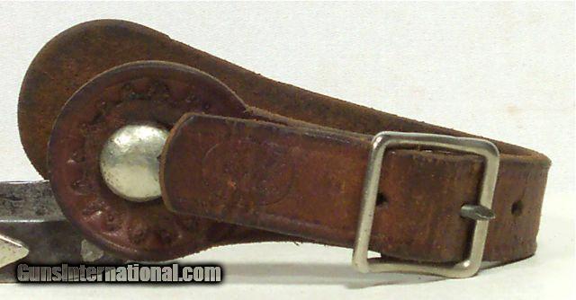 Description: FROM MY PERSONAL COLLECTION!!! Tom Johnson Sr., Coleman, Texas, Gal Leg Spurs; Circa 1890’s; E. Henrich, Mason, Texas, straps; which are much newer than spurs; All items shipped fully insured--Spurs $30; return policy: three days inspection from the date the item is received; full refund of shipping both ways ONLY IF THE ITEM IS MISREPRESENTED. Note: International sales only as laws permit. SOLD |
