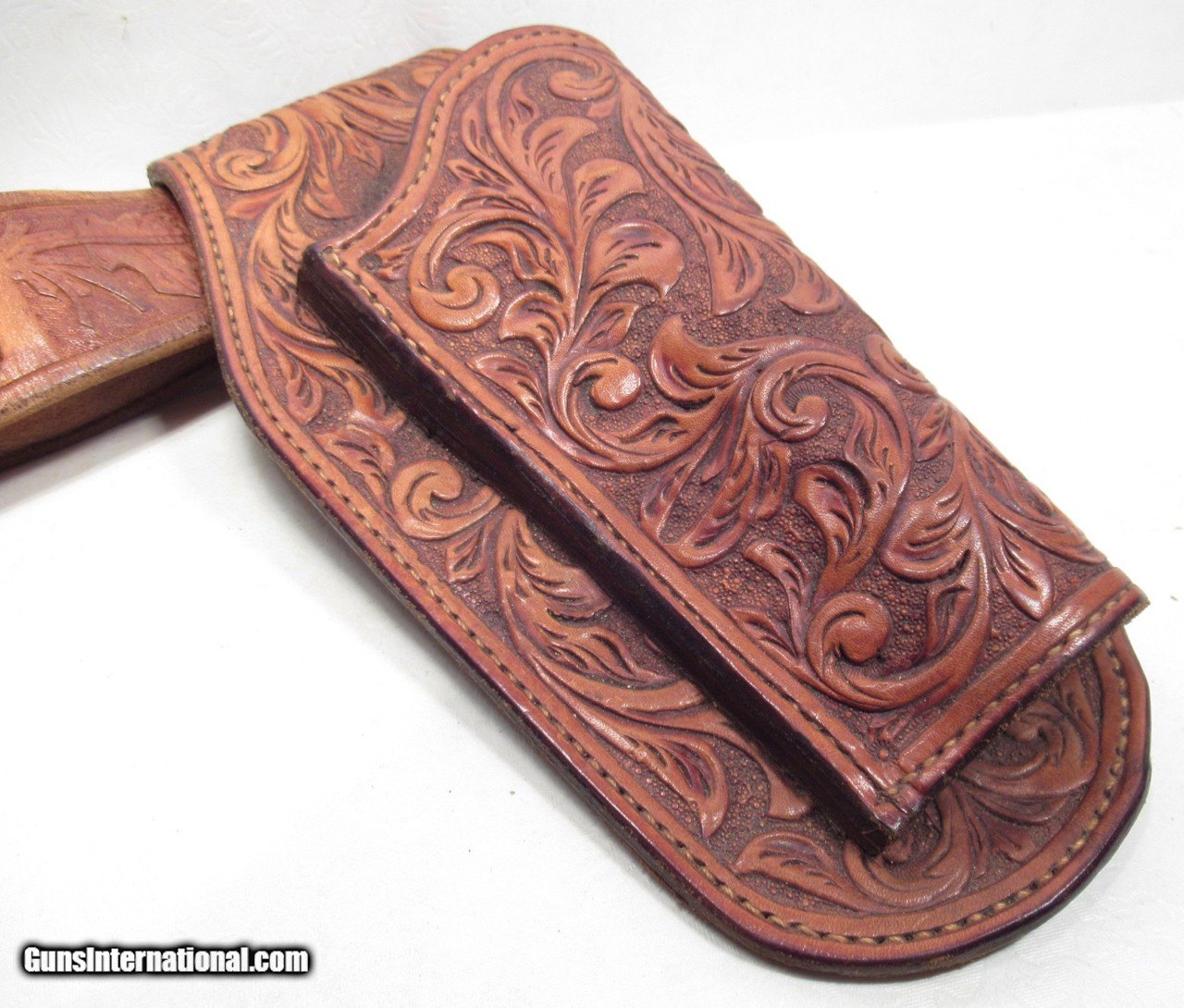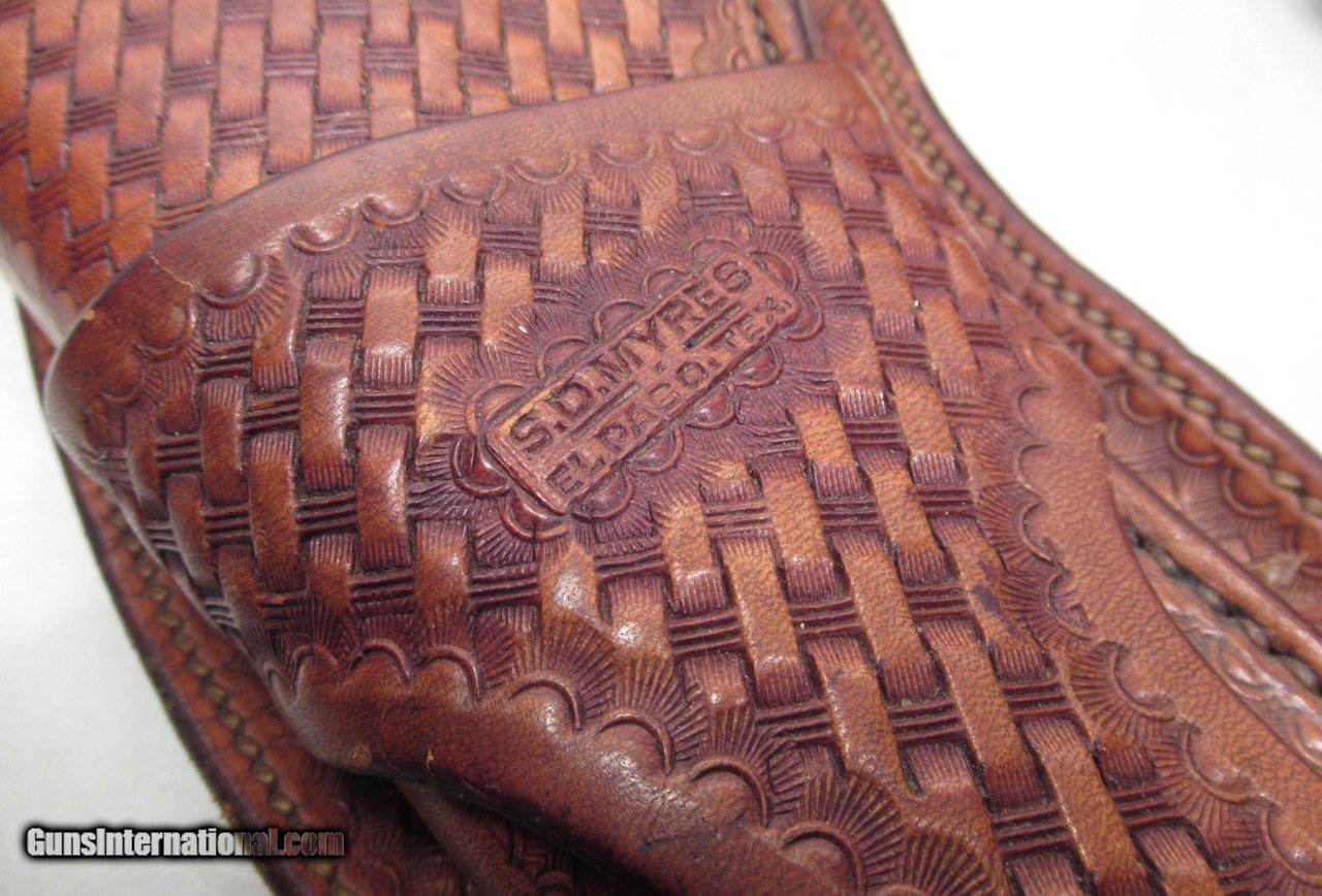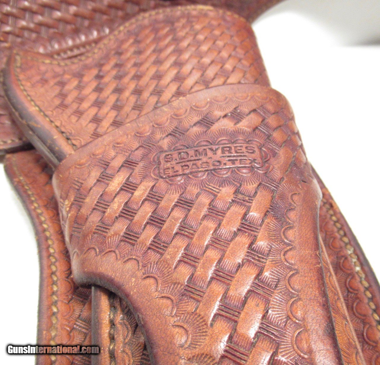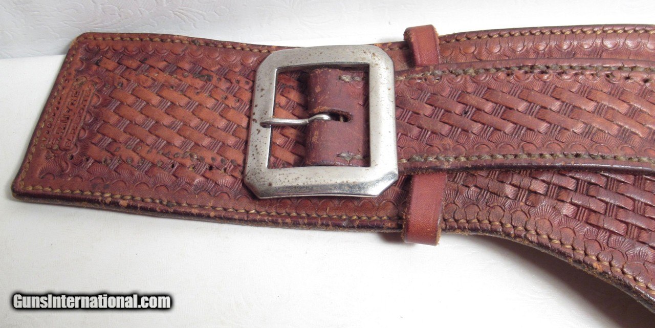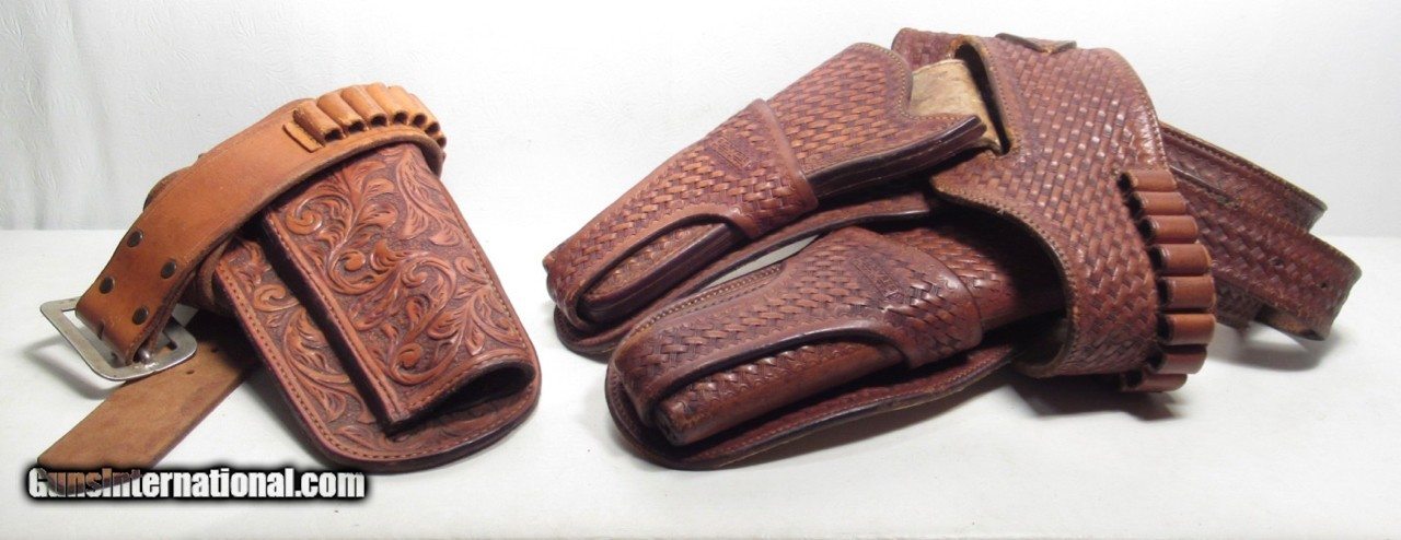 Description: Two Gun Rigs; S.D. Myres of El Paso, Texas Made and Marked Basket Weave Style Double Jockstrap Holster Gun Rig for .38 Special Caliber; Tooled Naumann’s of Leander, Texas Made and Marked Gun Rig for Colt Single Action Army Revolver with 4 ¾” Barrel; Sold as a Pair; See All Photos for Condition; No Texts; Call (254)541-5765 or Email Only; PERSONAL PROPERTY of Harold Wieser; Price: $425 Shipped; NO RETURNS; Payment Address: Harold Wieser - 1466 U.S. Hwy 77 - Rosebud, TX 76570; SEND PAYMENTS VIA USPS PRIORITY MAIL; BEWARE of SCAMS!!! – DO NOT SEND MONEY or CORRESPONDENTS ELECTRONICALLY UNLESS YOU HAVE SPOKEN to HAROLD WIESER FIRST! 254-541-5765 SOLD |