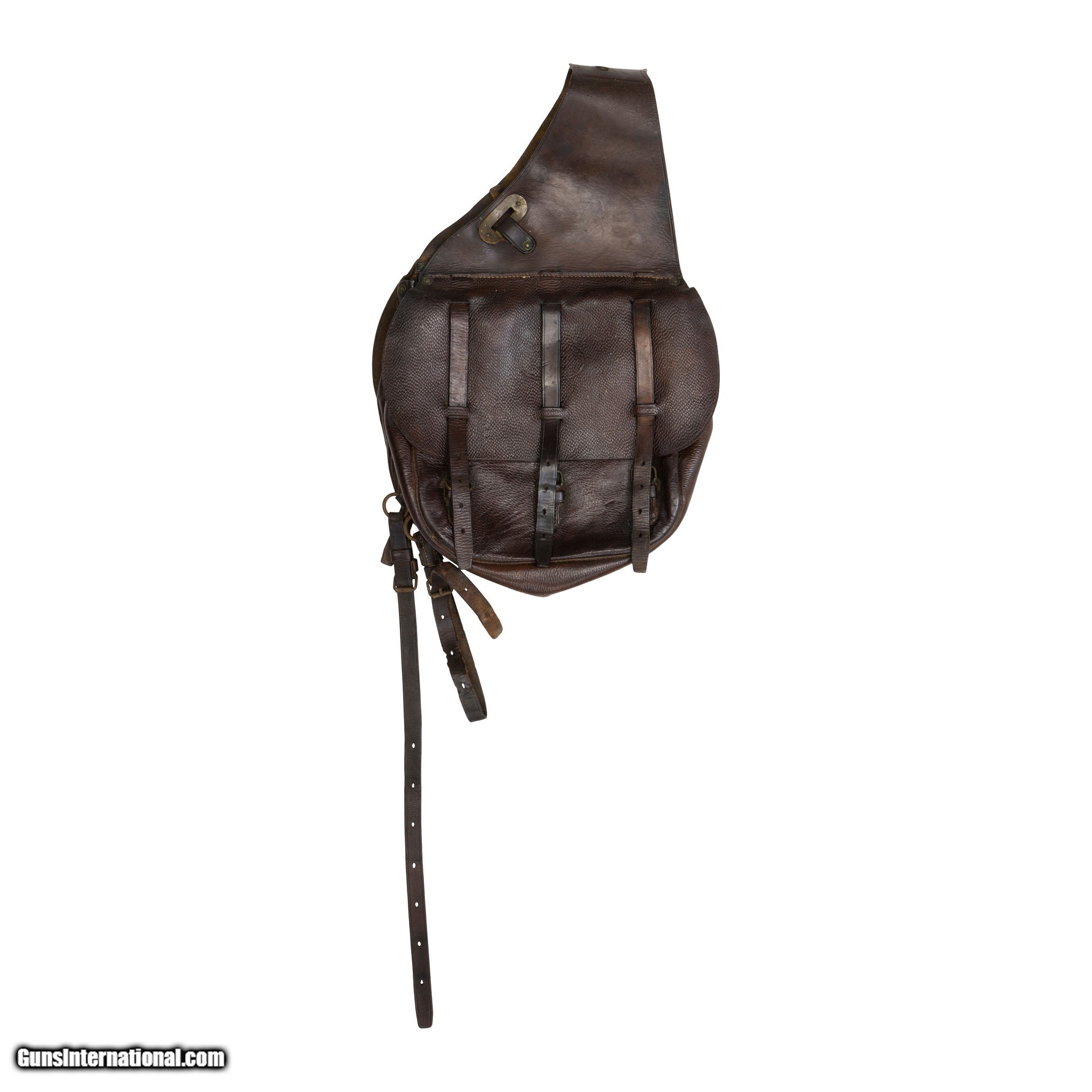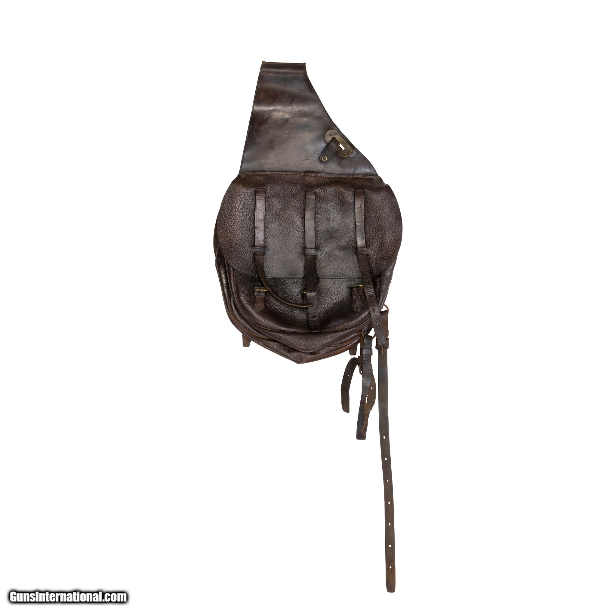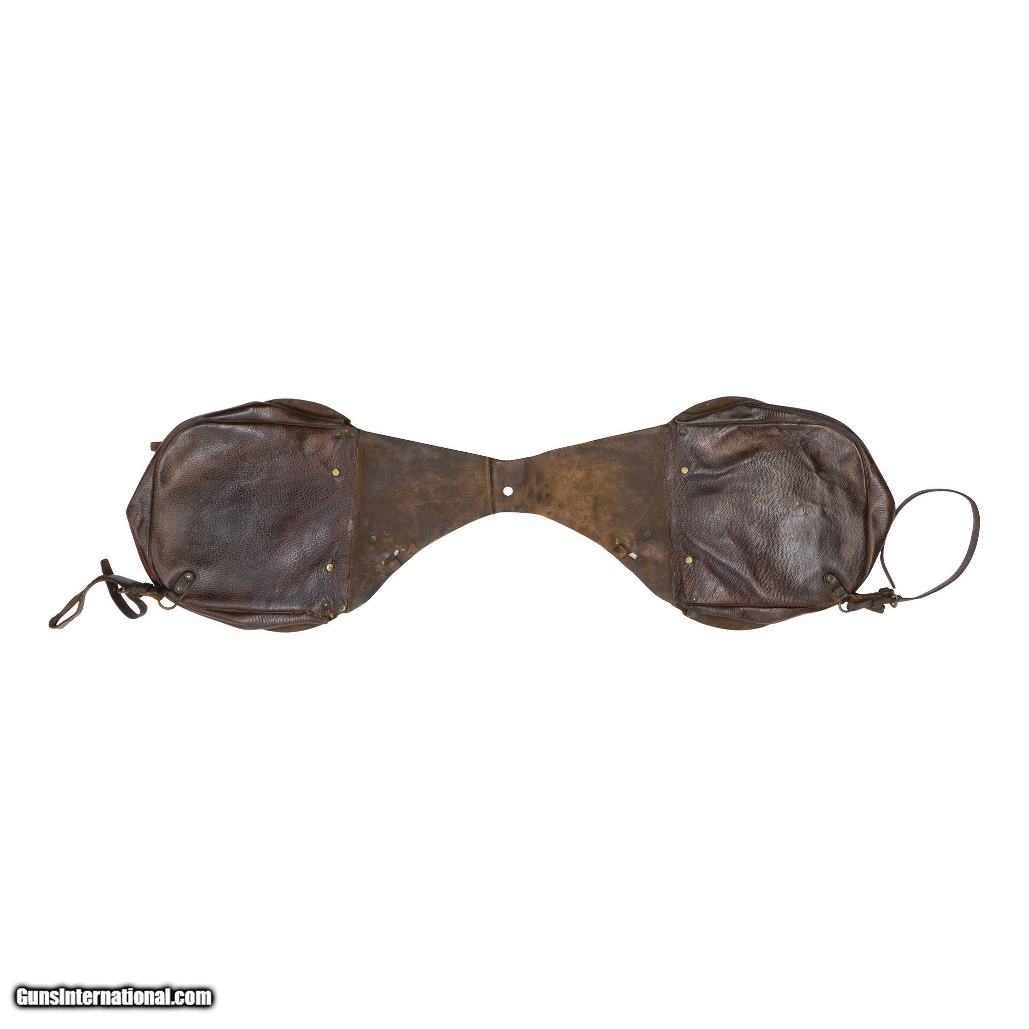 Description: Three strap saddle bag with flaps stamped "US." Marked "Boyt" over "M.S." In good condition, great for display in a Western or military collection or great for continued use as a reenactment piece. Size: 44" x 13" Family Owned & Operated Cisco’s Gallery deals in the rare, exceptional, and one-of-a-kind pieces that define the history of America and the Old West. Our pieces range from American Indian to Cowboy Western and include original items of everyday life, commerce, art, and warfare that tamed America’s frontier. Our 14,000 square foot gallery opened in 1996 in beautiful Coeur d’Alene, Idaho. Personal Service Cisco’s operates on old fashioned values – honesty and integrity, and all of our items are backed by our money back guarantee. We appreciate the opportunity to earn your business. Whether you desire assistance with a jewelry purchase, choosing a gift, identification, or even selling – we hope to be your trusted source. SOLD |
