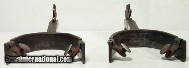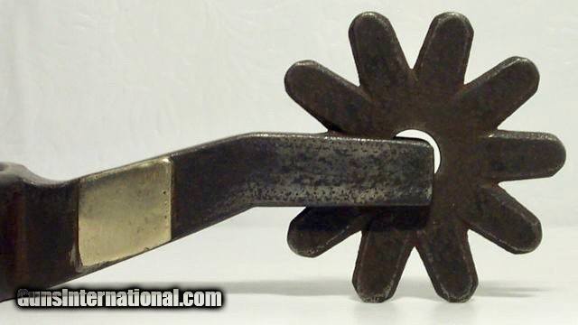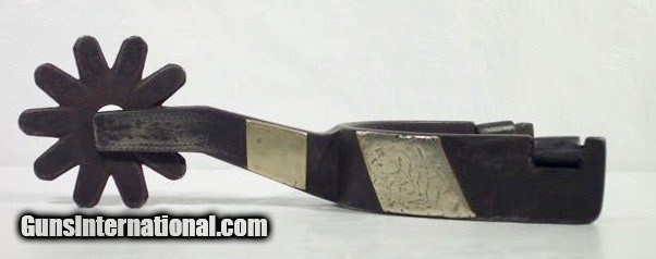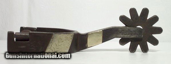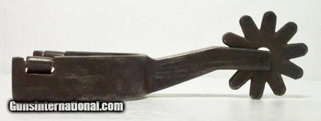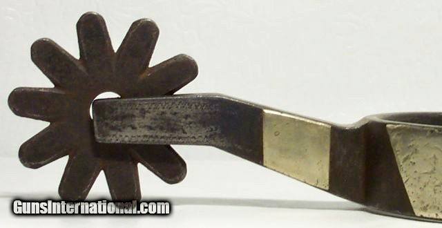 Description: Pair of Texas Spurs Made by James Oscar Bass in Tulia, Texas; Early 1900’s; these Spurs have the Rare Edge Mark in which the spur number is illegible; formerly in the Homer Mills & Ernie Davis Collection; from my own personal collection; All items shipped fully insured--Spurs $30; return policy: three days inspection from the date the item is received; full refund of shipping both ways ONLY IF THE ITEM IS MISREPRESENTED. Note: International sales only as laws permit. SOLD |