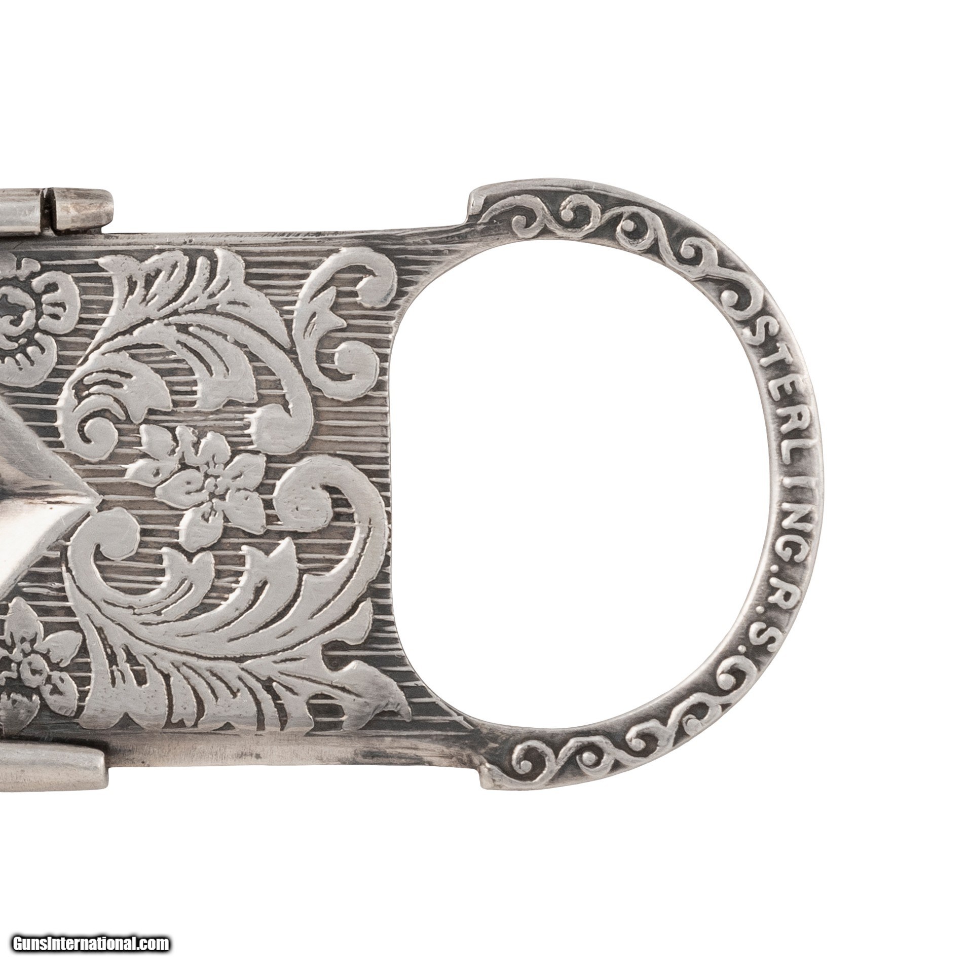 Description: Fancy and decorative Victorian cigar cutter. Would fit perfectly in the vest pocket of a gentleman of the time. Piece has lovely floral and scroll engravings on body, making it lovely yet functional. Great for display or continued use. Size: 2 x 1" closed SOLD |