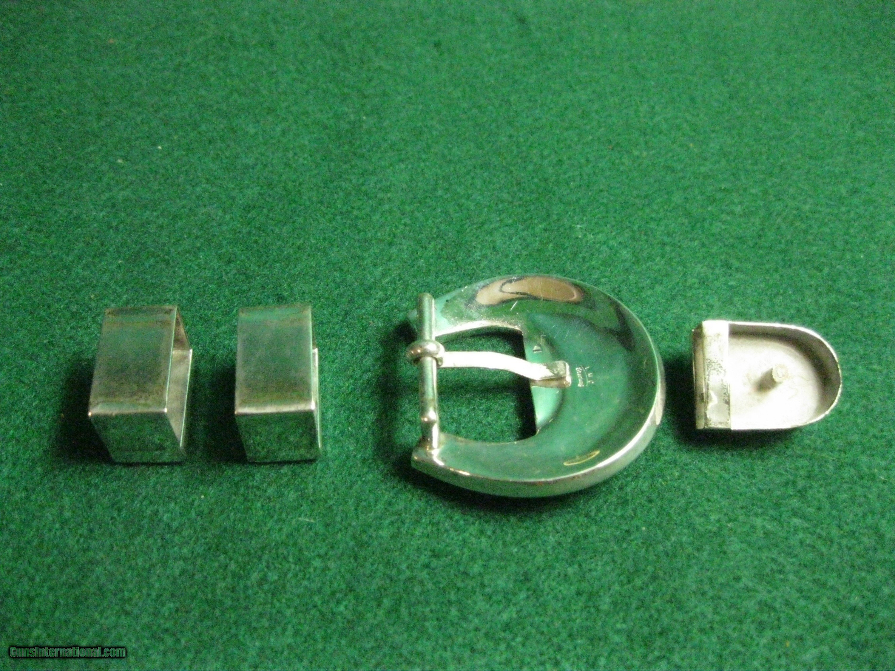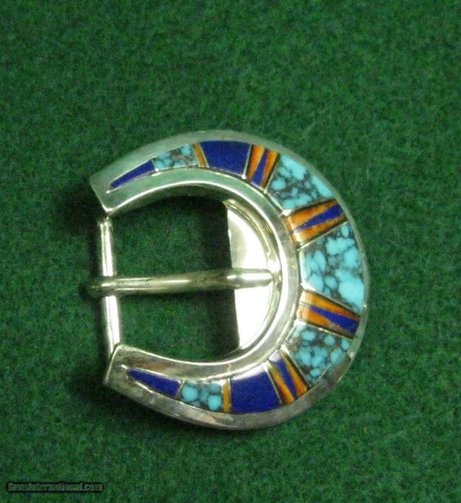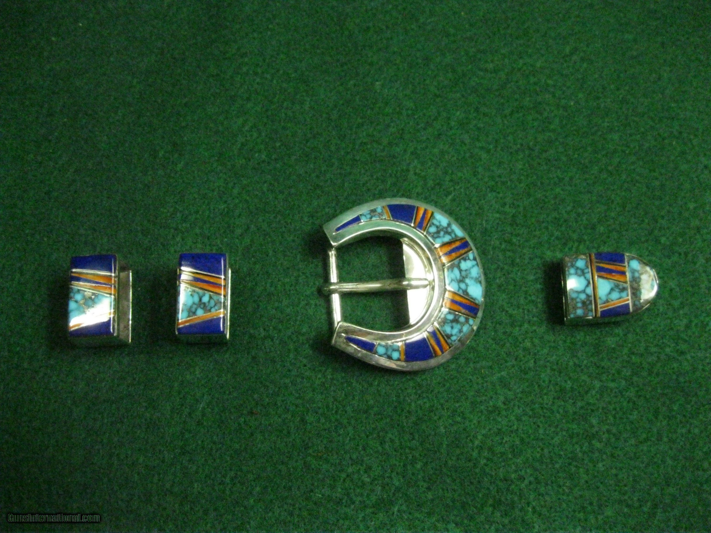 Western Belt Buckle Lapis Turquoise Oyster Shell Heavy Sterling Silver