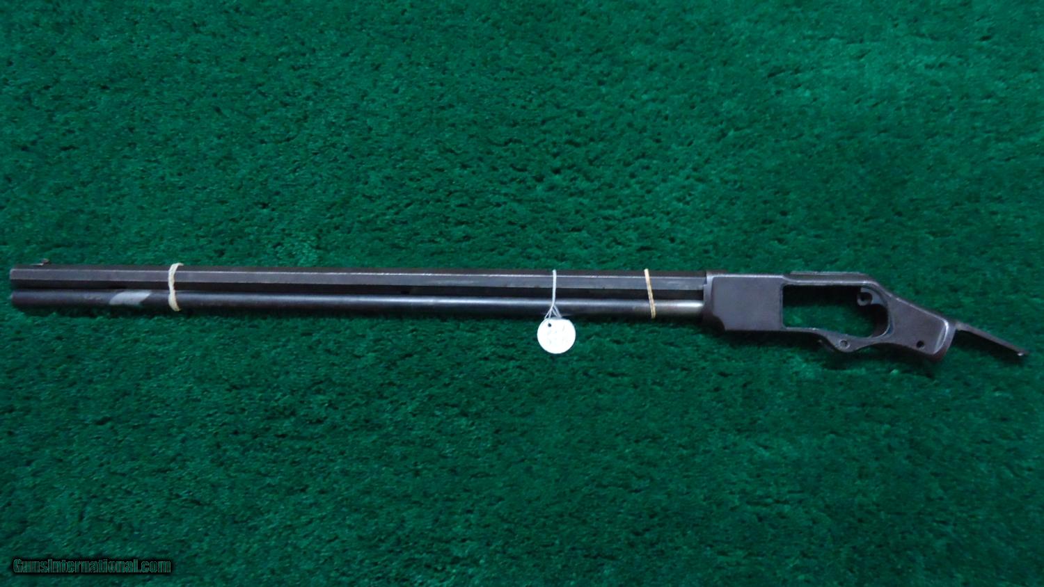 Description: Not a complete gun. A stripped down frame with all parts removed. 44 cal . Octagon bbl and a mag tube. Frame is a medium brown color with light pin prick pitting in places but overall good metal cond. Bbl is orig 24" and has front sight but no rear sight. Bore is fair to good. A few light pits and some roughness. Good rifling. A good project if you have a bunch of 73 parts. Leroy Merz Antique Firearms specializes in antique and vintage Winchesters and other fine American firearms. Since 1965 Mr. Merz has taken part in the world of firearms and has been a contributor to many well known reference books. Just recently we mailed the 126th edition of our privately-published catalog. We have hundreds of additional guns in every price range at our home online. Search for Merz Antiques in google. SOLD |