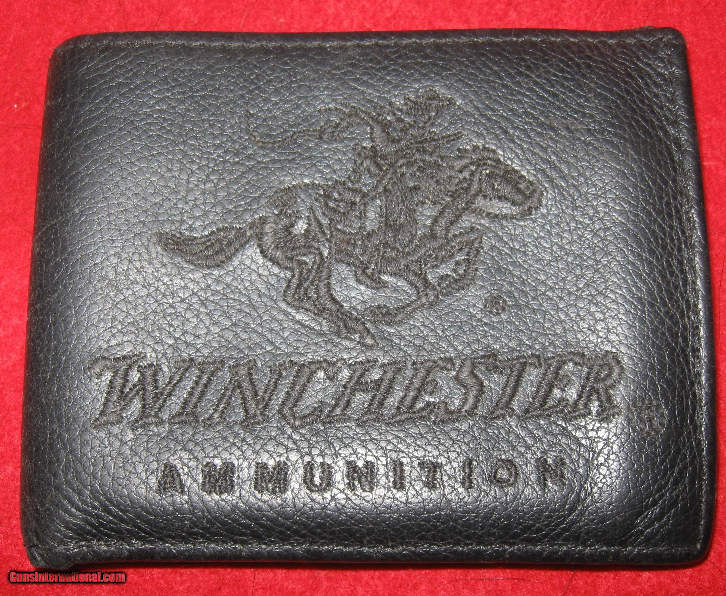 Description: sale pending blaise h - hold till 1/14/21 - THIS LEATHER WALLET HAS WINCHESTER'S LOGO AND "WICNCHESTER AMMUNITION" EMBROIDERED ON THE FRONT. IT IS LIGHTLY USED WITH NO DAMAGE. SHIPPING IS $8.35 USPS PRIORITY DIRECT. SOLD |