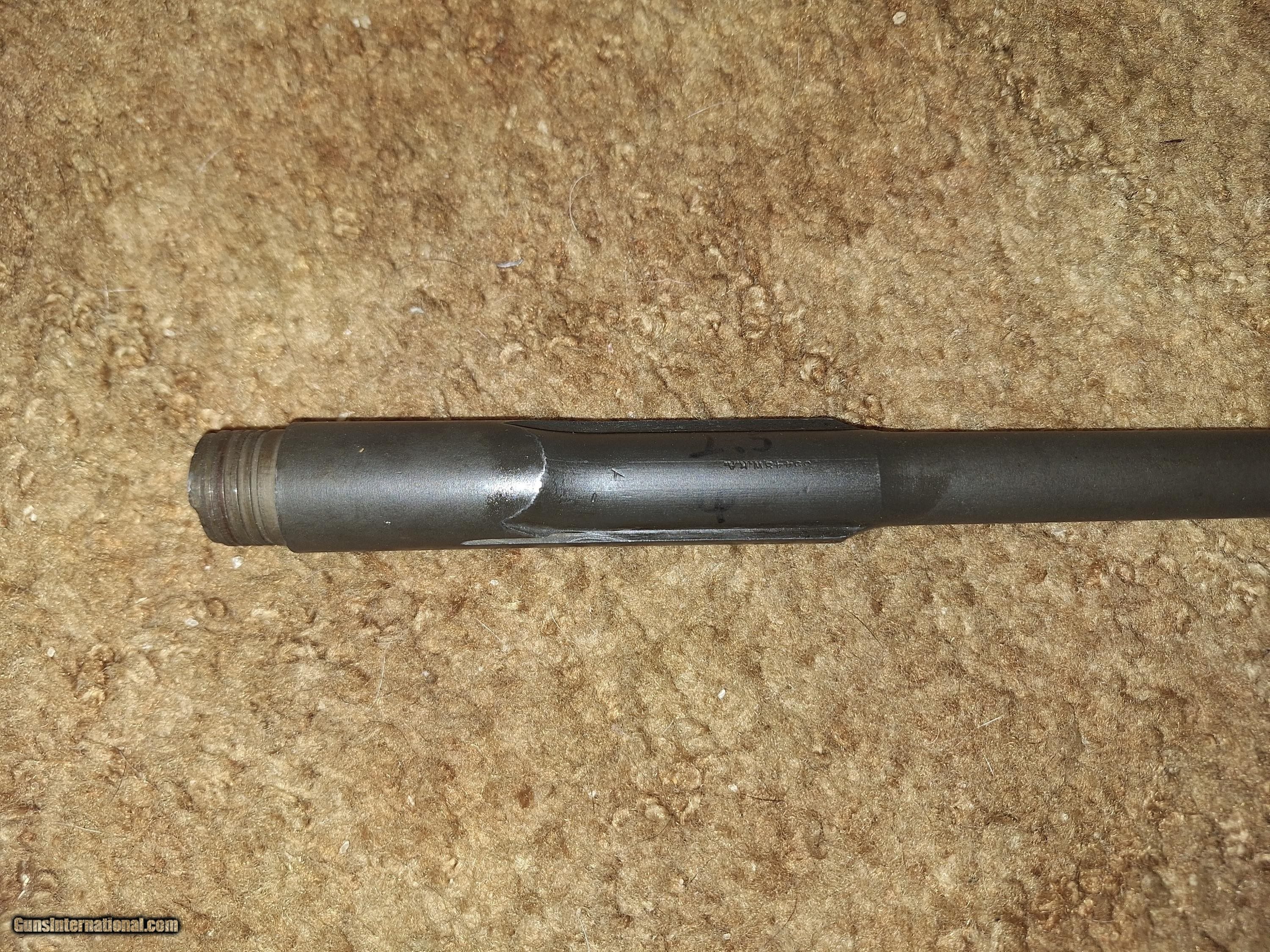 Description: Item is a spare barrel M1 garand Winchester 30/06 barrel measuring ME 2 TE 3.5 Gas port area in really great shape so is crown and bore. It has the PW stamp in circle left rear of barrel plus flaming bomb.On the top of barrel D35448 W.R.A. will complete that Winchester M1 project. Shipping will be 32.99 to your door. Last picture the ME and TE measurements thank you wont let change main title. For payment please send a check or cashiers check SOLD Rifle Caliber: .30-06 Springfield |