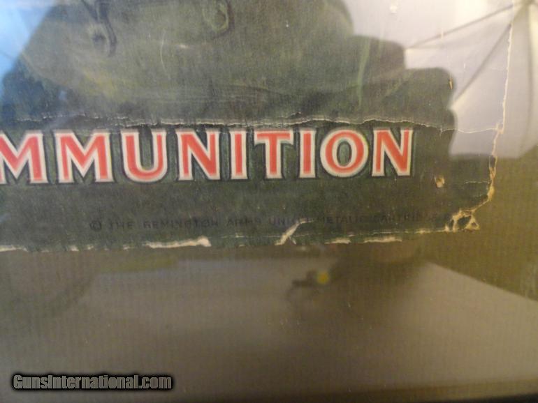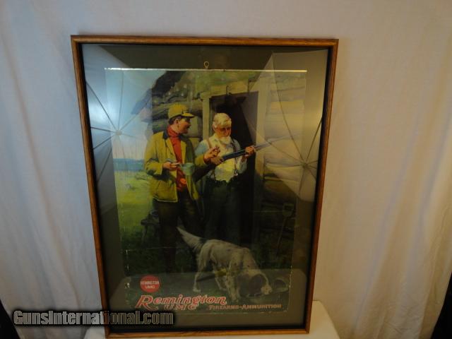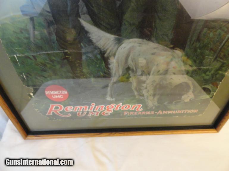 Original circa 1920 Remington poster. 18x28 with vibrant colors and metal top band. It has some issues with edge and bottom corner wear and might be mounted but is framed and ready to hang and quite handsom and presentable.