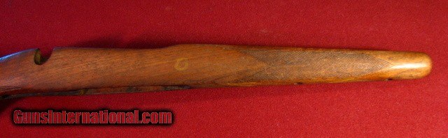 Description: Factory stock for Pre-War Model 70 with standard barrel channel and clover leaf top tang. Slightly shortened for recoil pad with overall length of 31 1/2" Recoil lug area invisibly glass bedded. No hardware. Overall very good restoreable condition. SOLD |