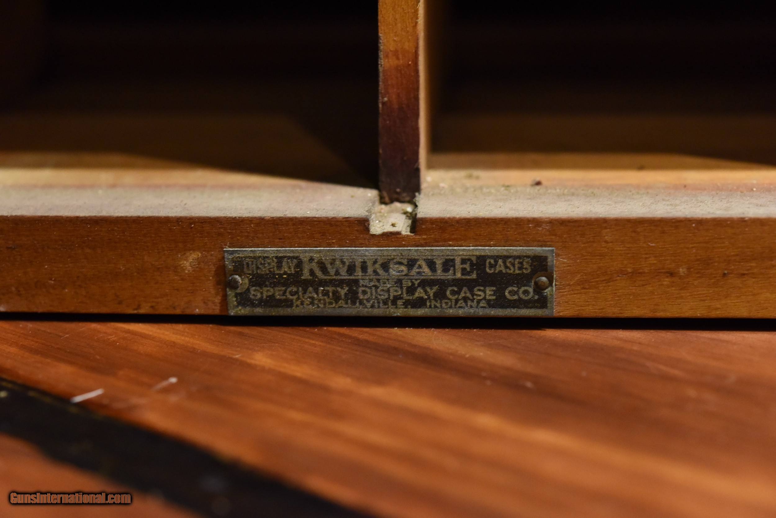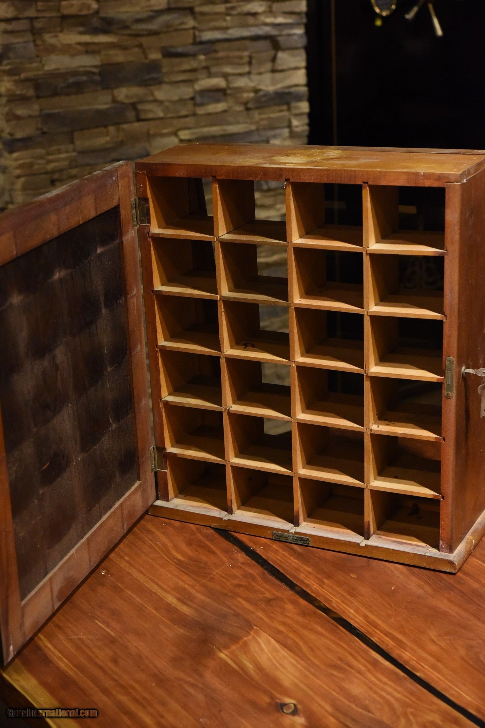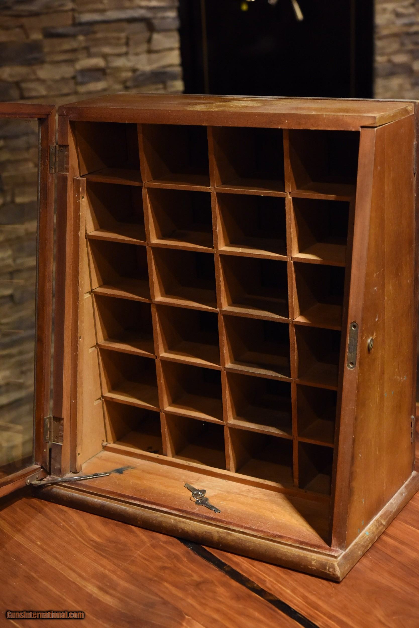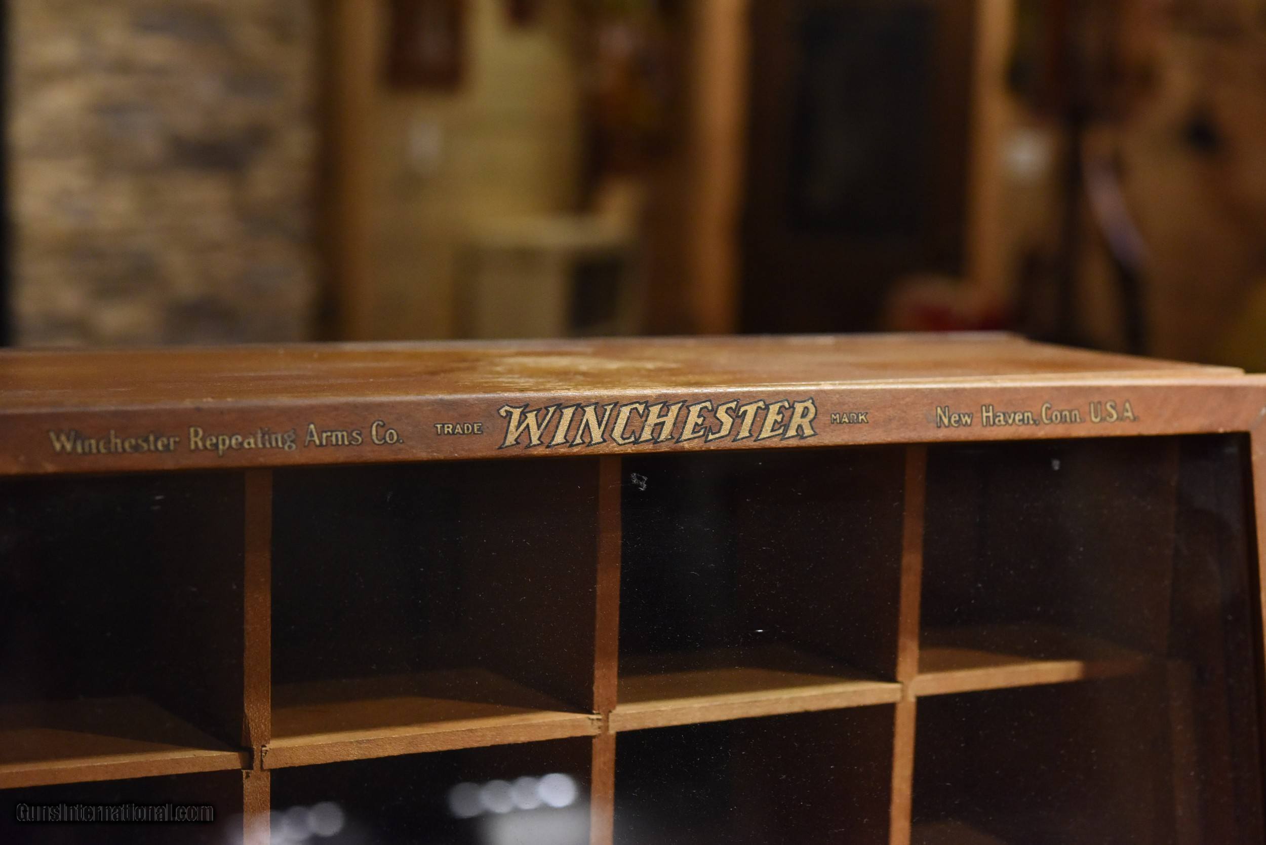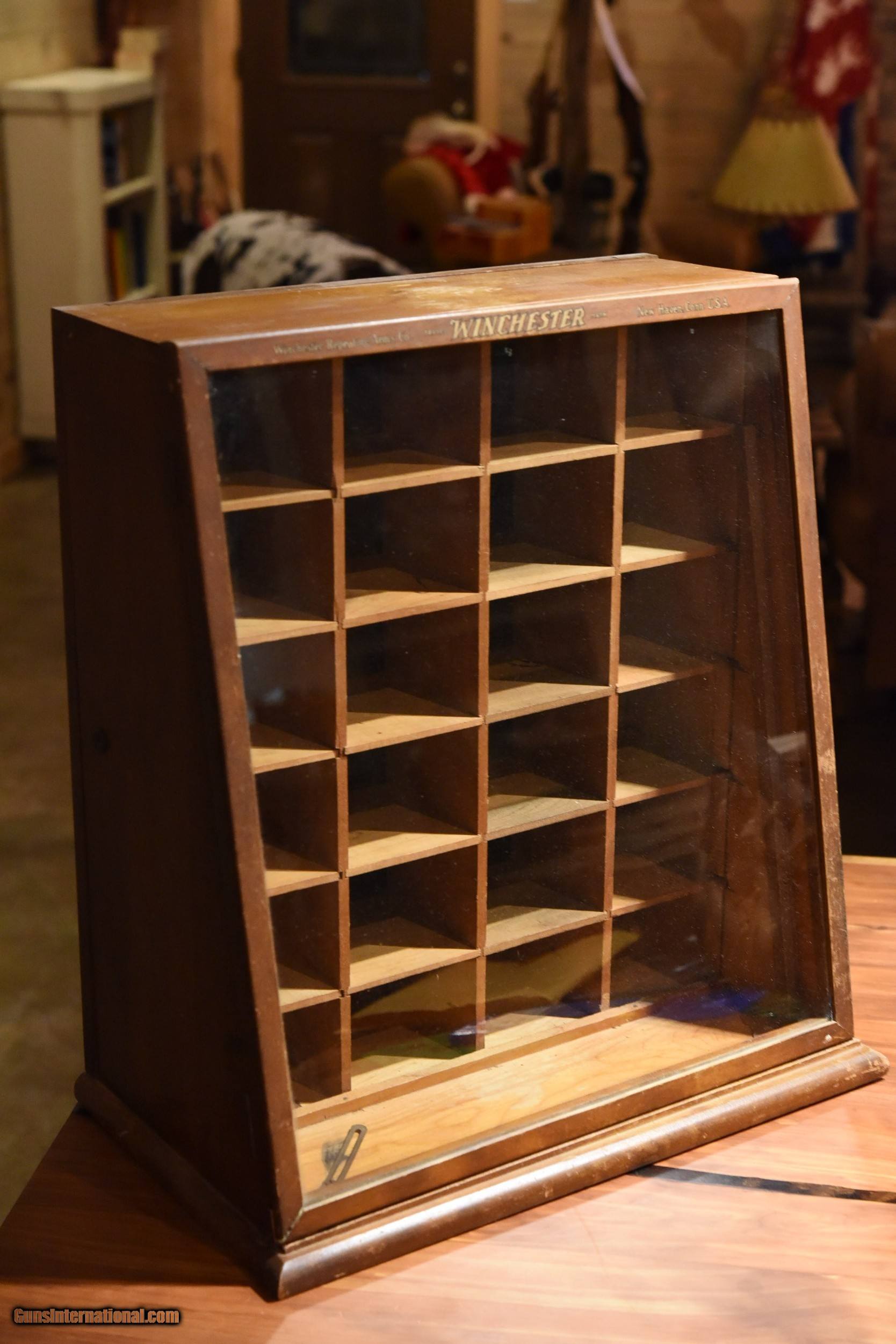 Description: SOLD This a beautiful, antique Winchester counter display cabinet. It is all original, including old wavy glass and still having its original keys! It unlocks both on the front and back. I believe it was for knives, but as you can see, I used it to display my collection of Winchester 22 bricks. VERY RARE, I have never seen another. I am also selling the bricks of ammo, and will be listing them shortly. Decided to sell some of my lifelong collection because corona has killed my business. Thanks for looking. SOLD pending payment SOLD |