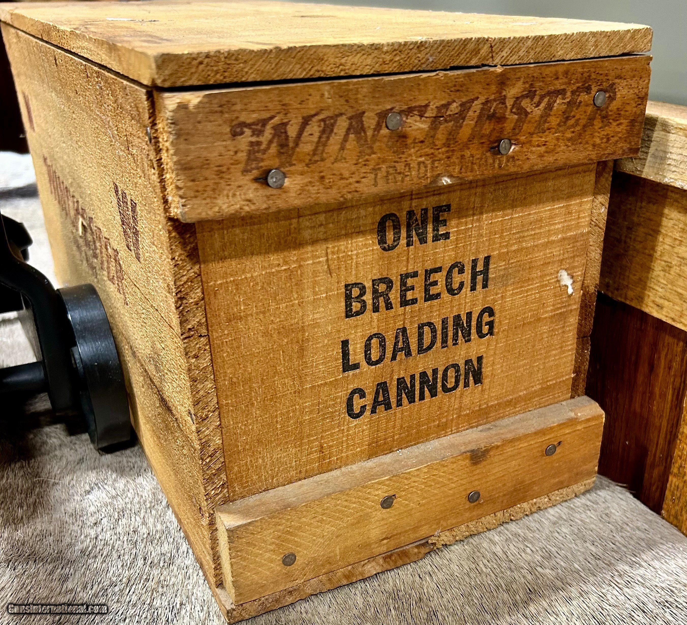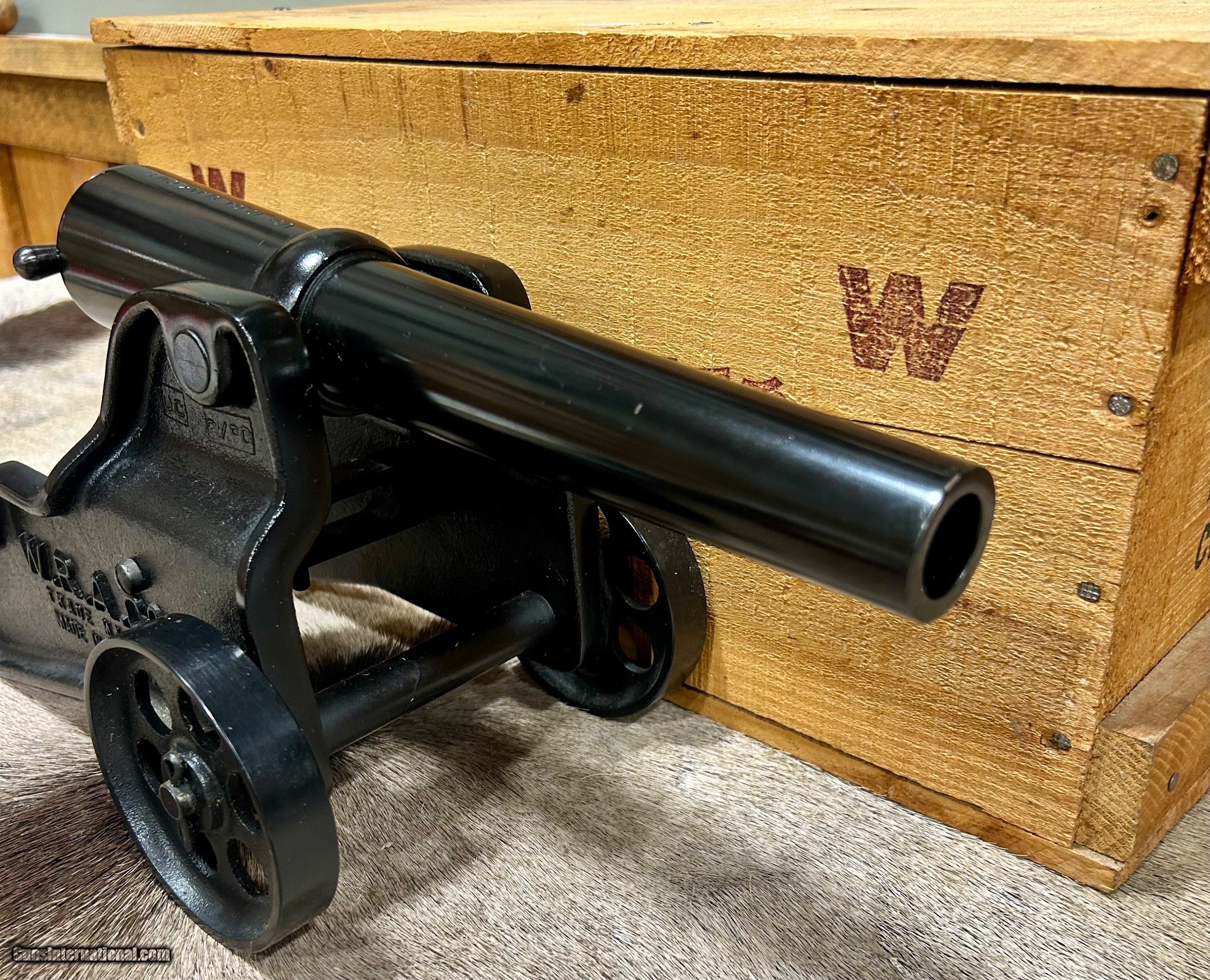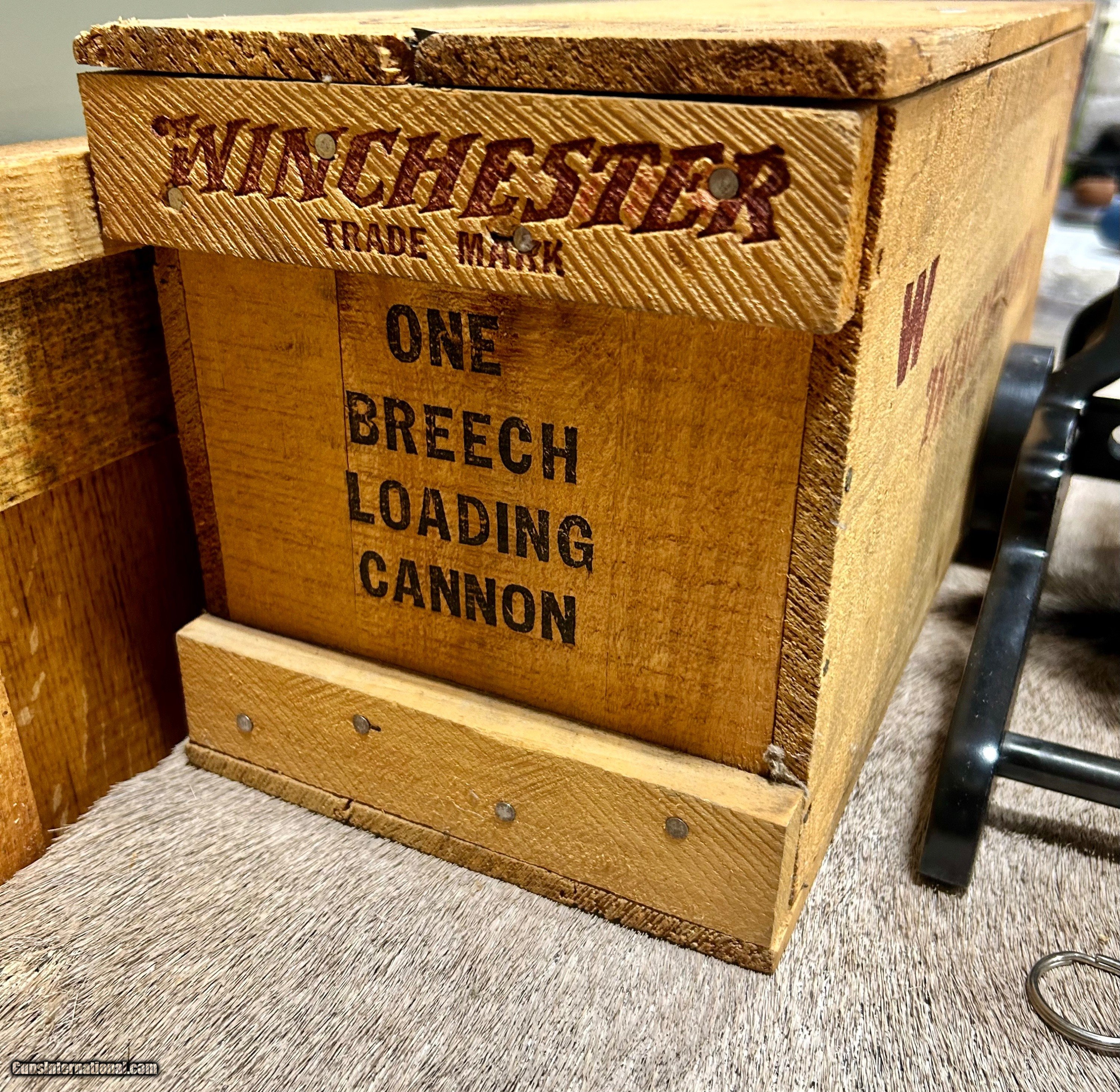 Description: Up for sale I have a Winchester Signal cannon made by Bellmore Johnson Tool Co. This cannon appears to have never been fired and is still in its original Wooden crate. It shoots 10 ga shotgun blanks. I'm not sure of the year it was made but this is NOT the one that they make and sell today, this one has a little age on it. This would make an awesome collectible or investment piece, and would look great in a man cave. These are also very fun to shoot at Fourth of July and birthday parties. Shipping and Ins will be $99. SOLD |