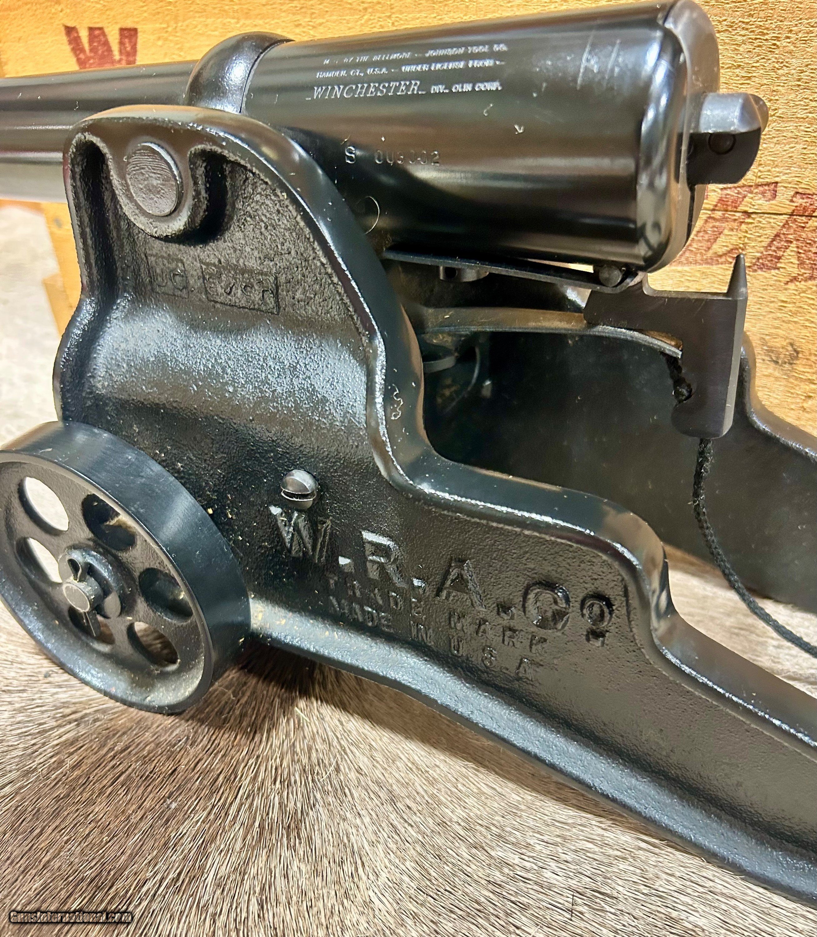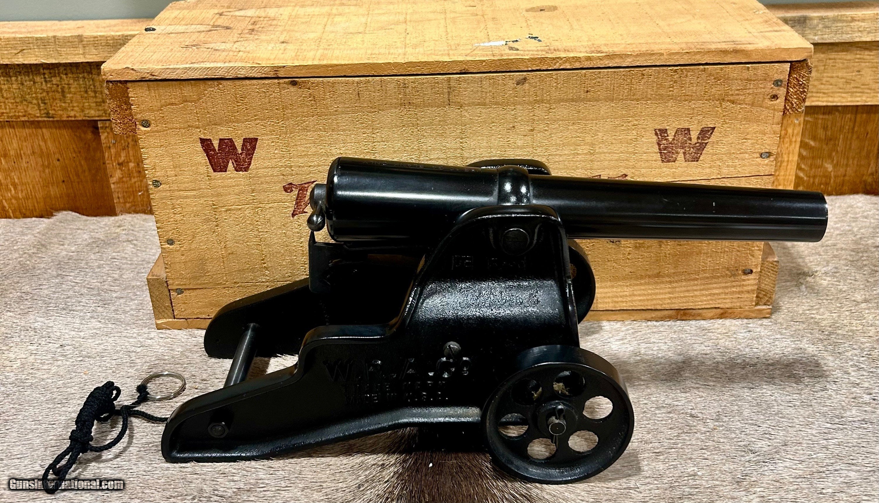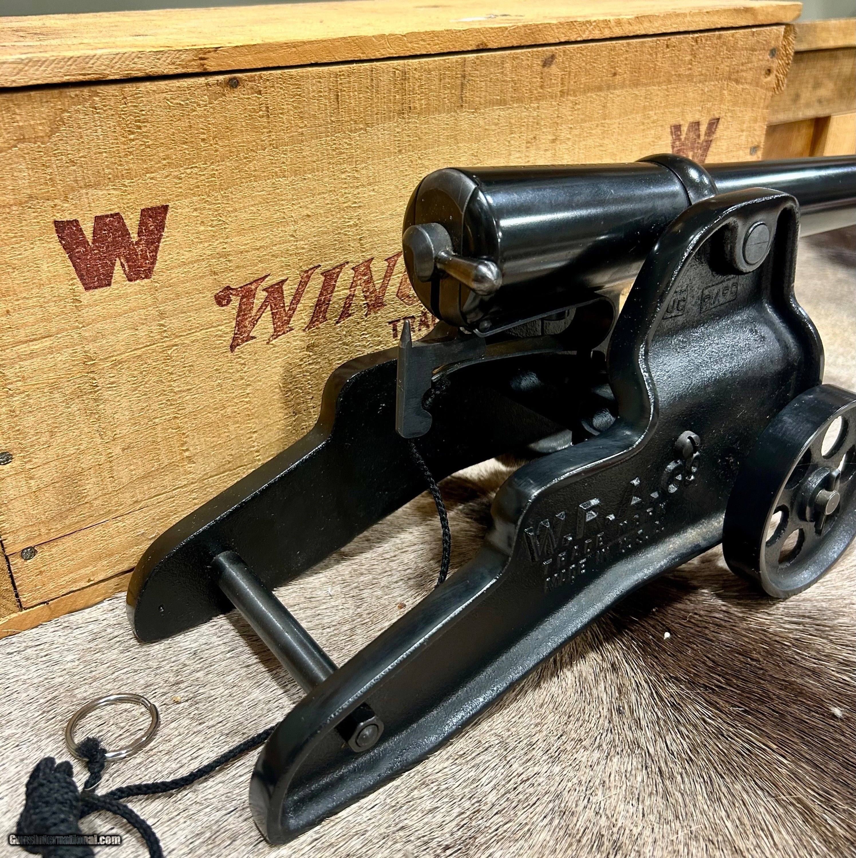 Description: Up for sale I have a Winchester Signal cannon made by Bellmore Johnson Tool Co. This cannon appears to have never been fired and is still in its original Wooden crate. It shoots 10 ga shotgun blanks. I'm not sure of the year it was made but this is NOT the one that they make and sell today, this one has a little age on it. This would make an awesome collectible or investment piece, and would look great in a man cave. These are also very fun to shoot at Fourth of July and birthday parties. Shipping and Ins will be $99. SOLD |