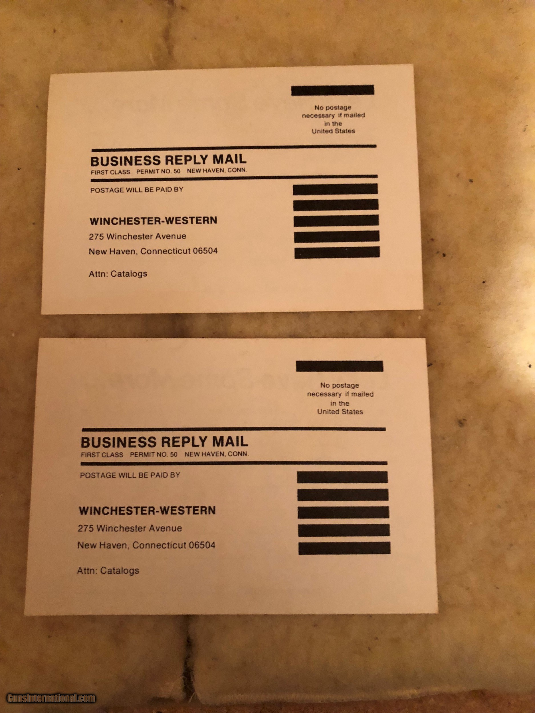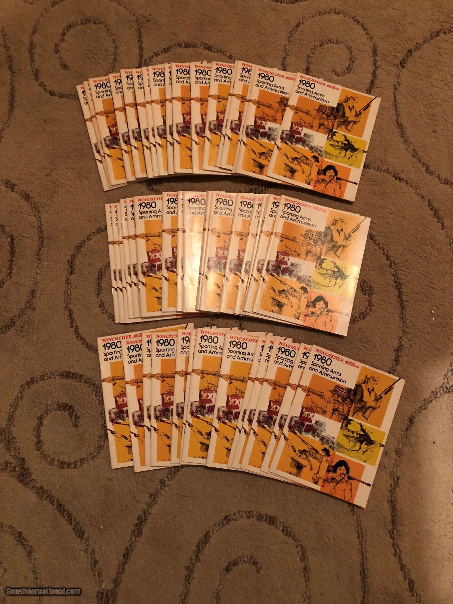 Description: Here we have a Winchester 1980 Catalog Counter Display. Box has 49-1980 catalogs. These are the small catalogs, they measure 51/2"X71/2". Box that the catalogs go in is solid except for the front left corner, it has been taped other than that the box says take one. Catalogs have guns and accessories for the year 1980. I don't see many of these so it would be a great addition to any Winchester collection. All 49 catalogs are in excellent condition. Ask any questions or ask for more pictures. Shipping is $12.96 USPS Priority Mail. Sales only in the U.S.A..Thanks SOLD |