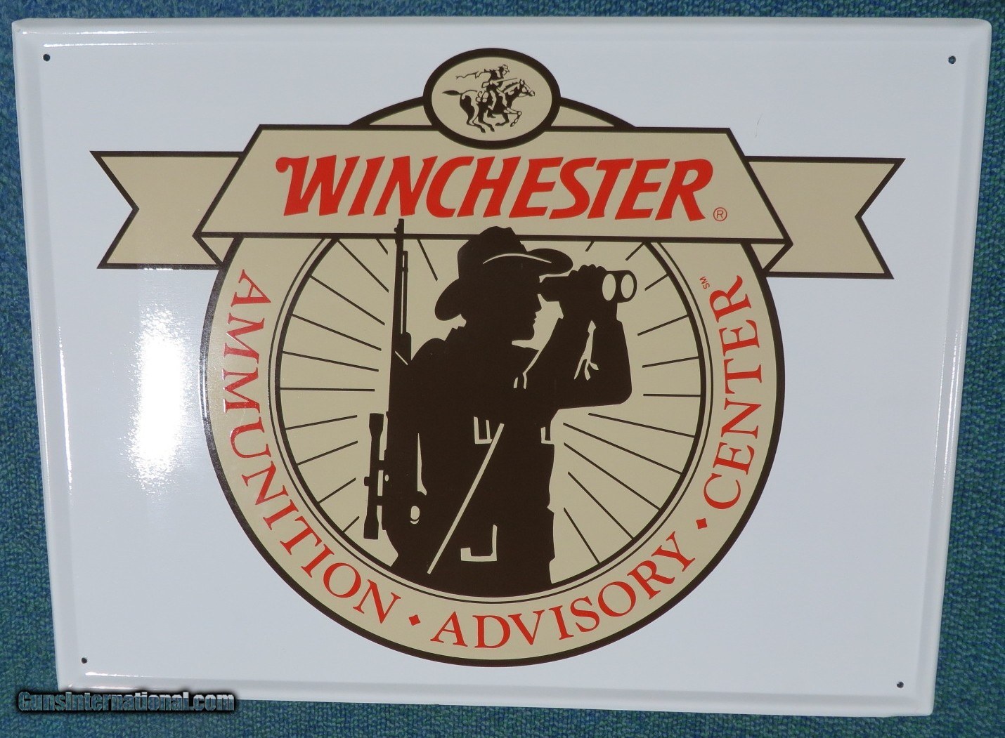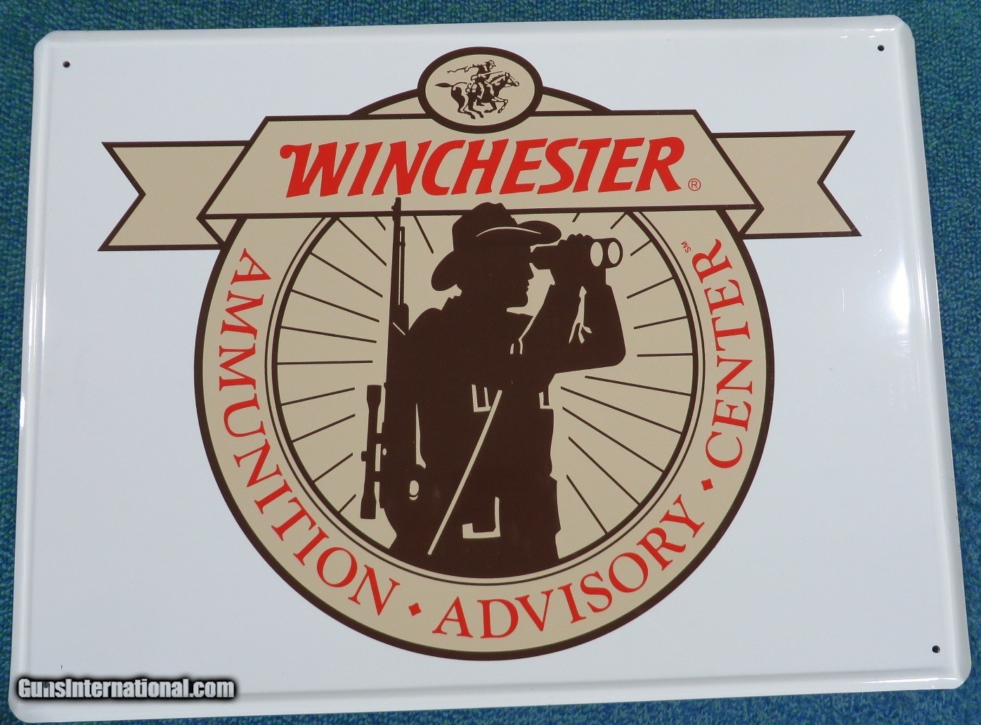 Description: Original from the 1990's. Measures 24 by 18 inches. Never displayed in original shipping carton from Winchester. Has one very minor dent in the hunter's hat that I could not even get to show in the photos. SOLD |