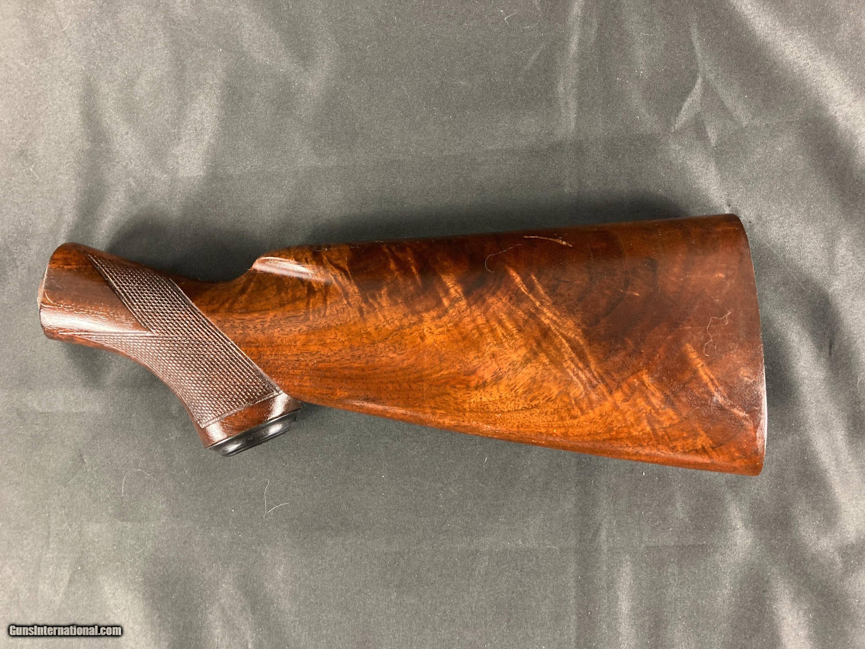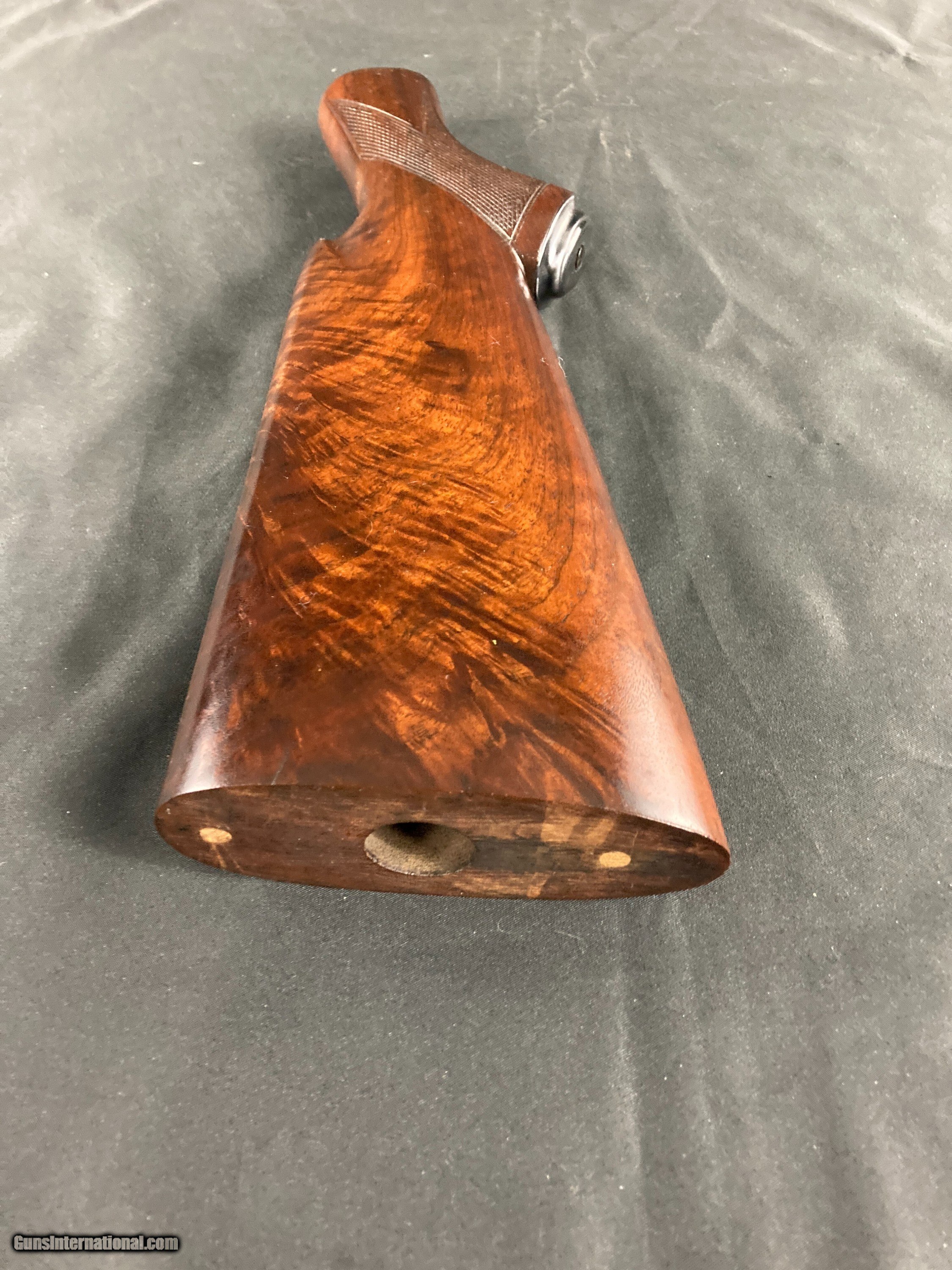 Description: factory original select figured checkered dark walnut wood, pistol grip with the Pigeon Grade steel grip cap from the 1950's, a 1 and1/4 inch recoil pad will provide a 14 inch LOP, $20 shipping Price: $275.00 Contact Seller |