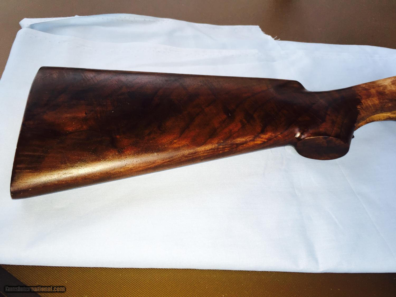 Description: Beautiful original deluxe wood butt stock-factory original priced below any dealer. I have three other original factory wood stocks -one with matching numbers butt stock and splinter forearm, one stock for a 20 ga Model 21 -$750.00 per set. This wood is for a 12 ga model 21 and I have a 20 ga stock SOLD |