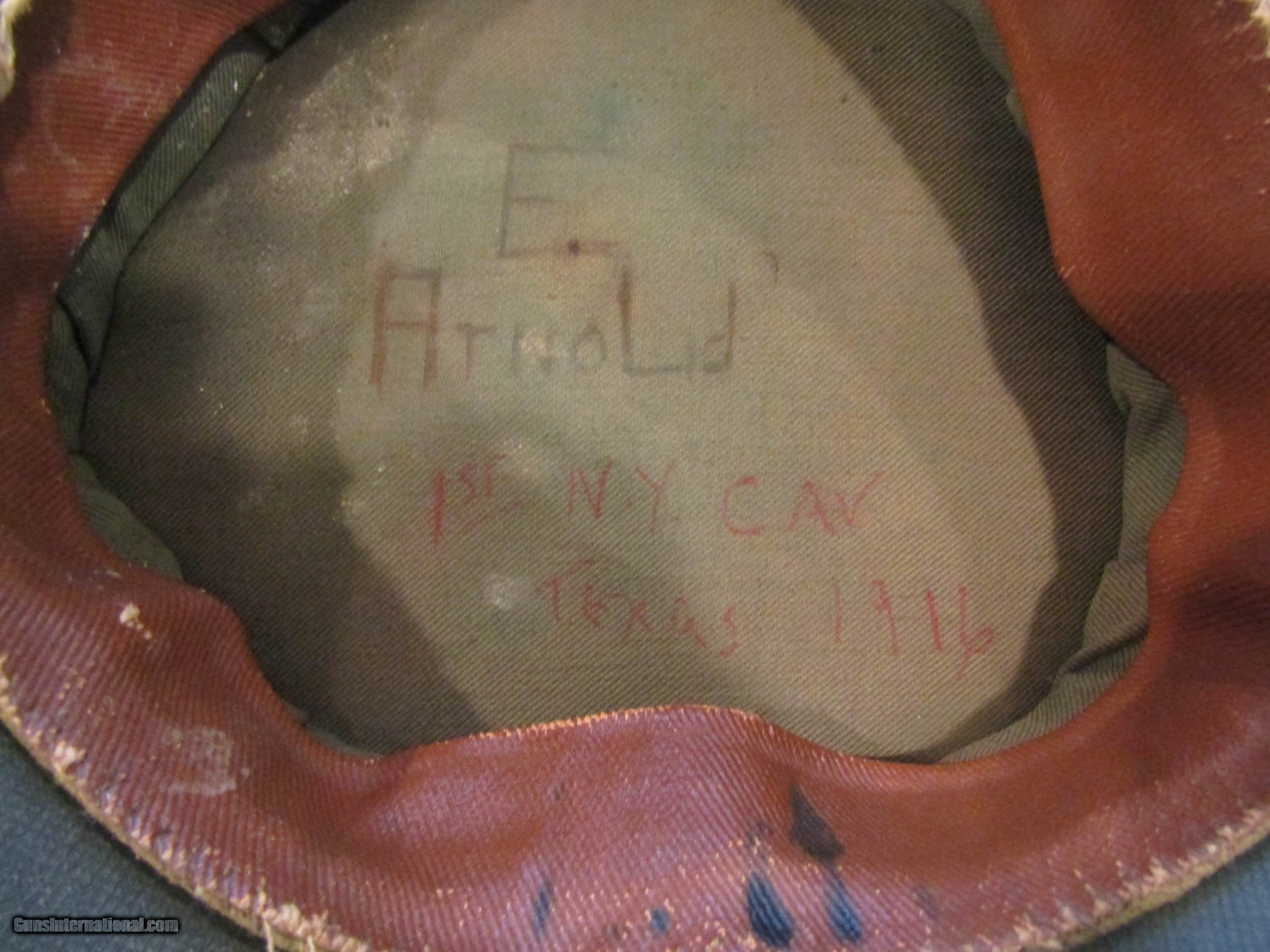 1916 I'D E.ARONALD 1ST N.Y. CAVARY TEXAS 1916, MODEL 1912 HAT WITH 1911 FRONT EMBLEM.