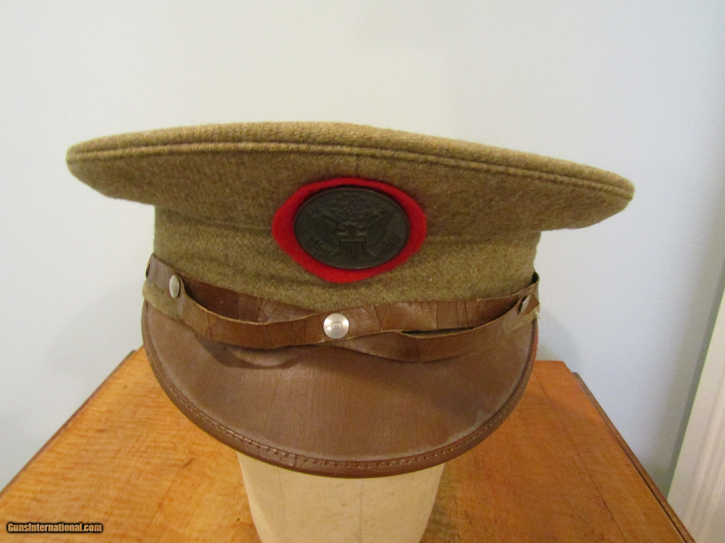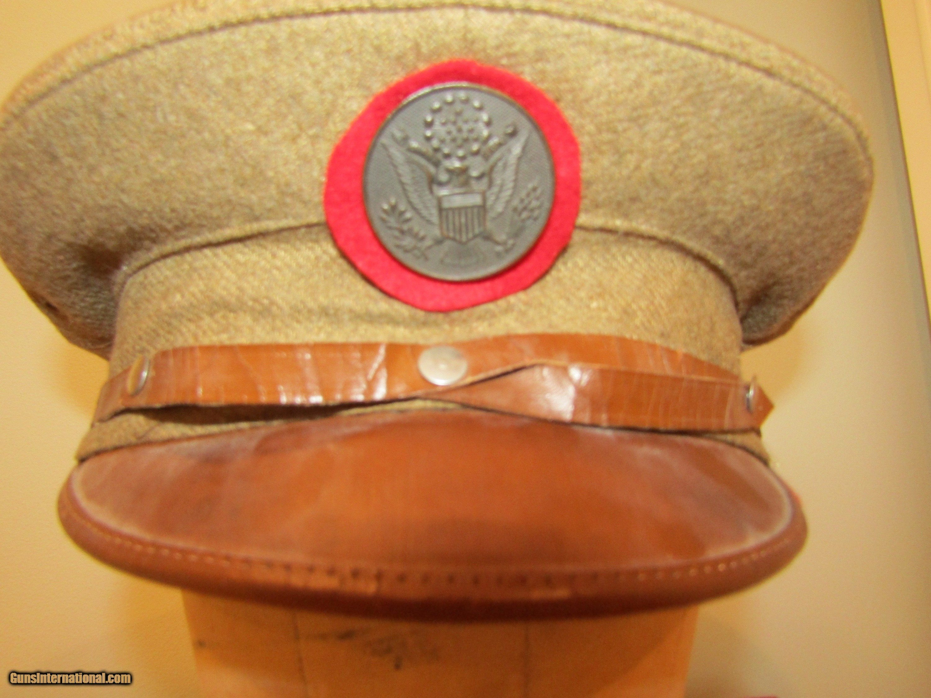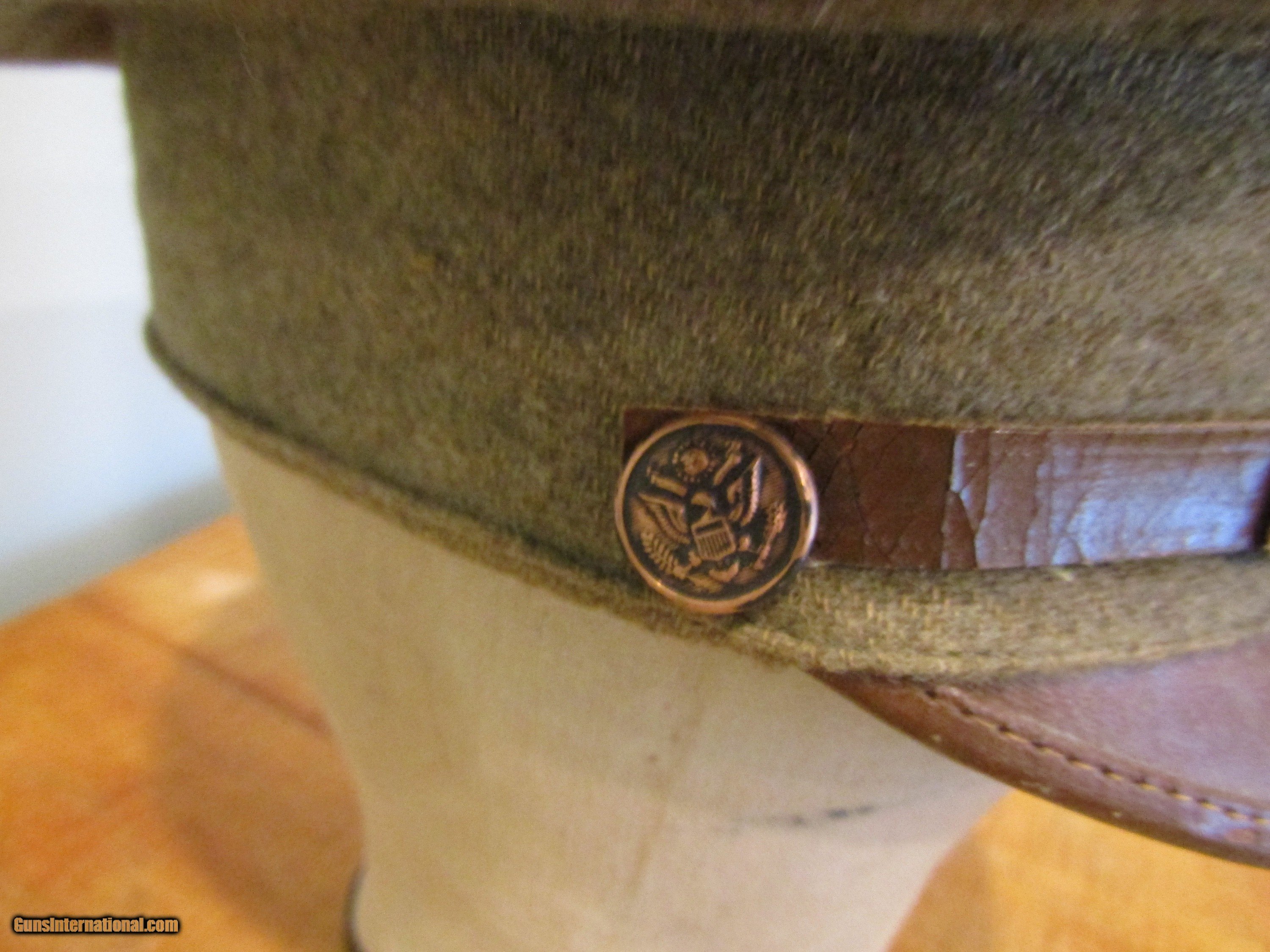 Description: This is an original period Ameriican & MEXICAN period boder war hat ,ID to E.ARNOLD ,1ST CALVARY N.Y. ,TEXAS 1916 WRITTEN ON THE INSIDE,THE HAT IS IN GOOD CONDITION ,WITH SOME LOSE SEWING ON THE SWEAT BAND. THE EDGE IN ONE SPOT SHOWS SOME WEAR , and the fron band on the hat needsto be reajusted, but a good strong hat. SOLD |