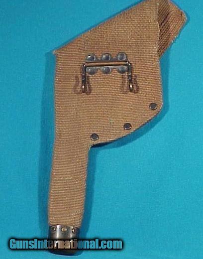 Description: Original Mills .38 Cal. Colt Revolver Canvas Holster - Tan. Holster shows light wear and use. No markings (Not all of these holsters were marked). Hard to find any more. Used between 1905-1911. SOLD Handgun Caliber: .38 Long Colt |