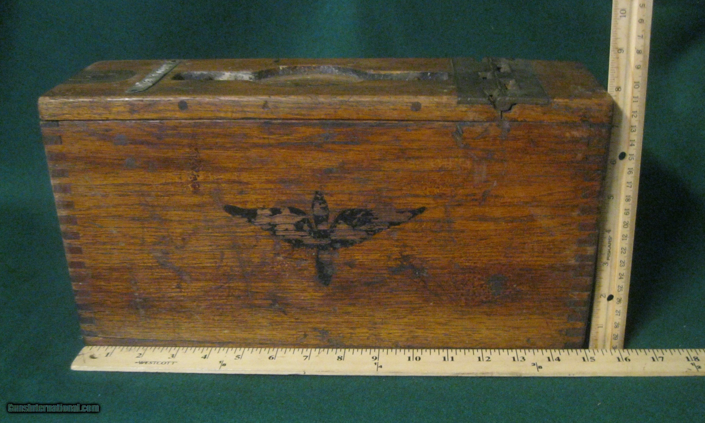 Description: WWI 30cal Machine Gun WOOD Dovetail Ammo Box Aerial Airplane Marked Shipping $26 SOLD |