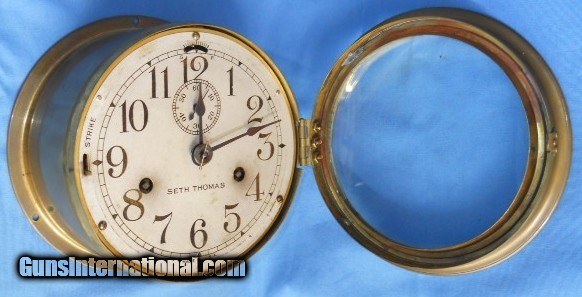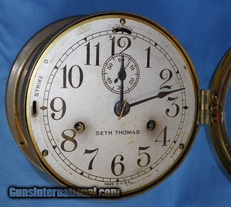 * Antique 7" BRASS SETH THOMAS SHIPS BELL YACHT CLOCK
