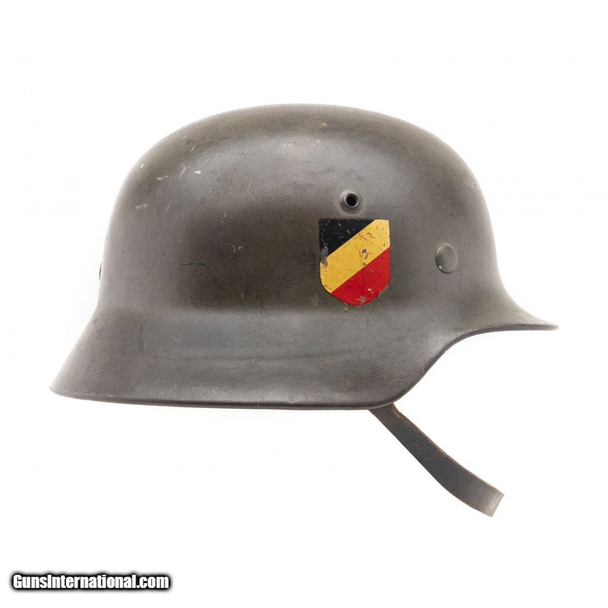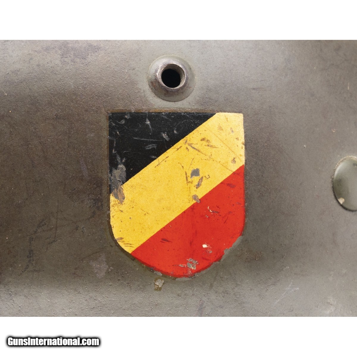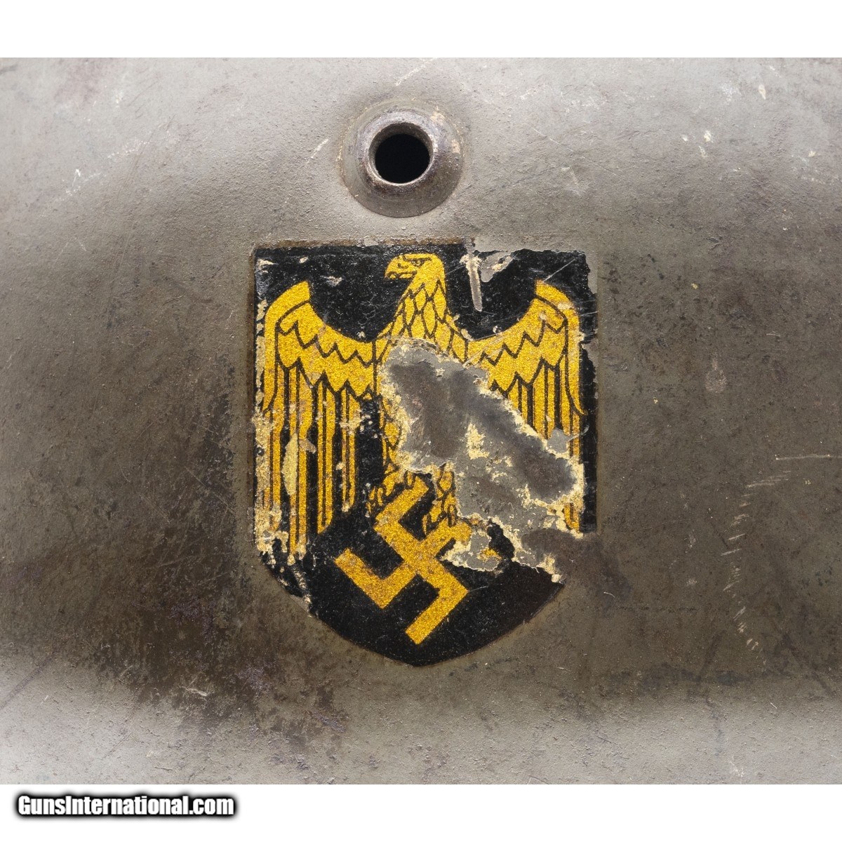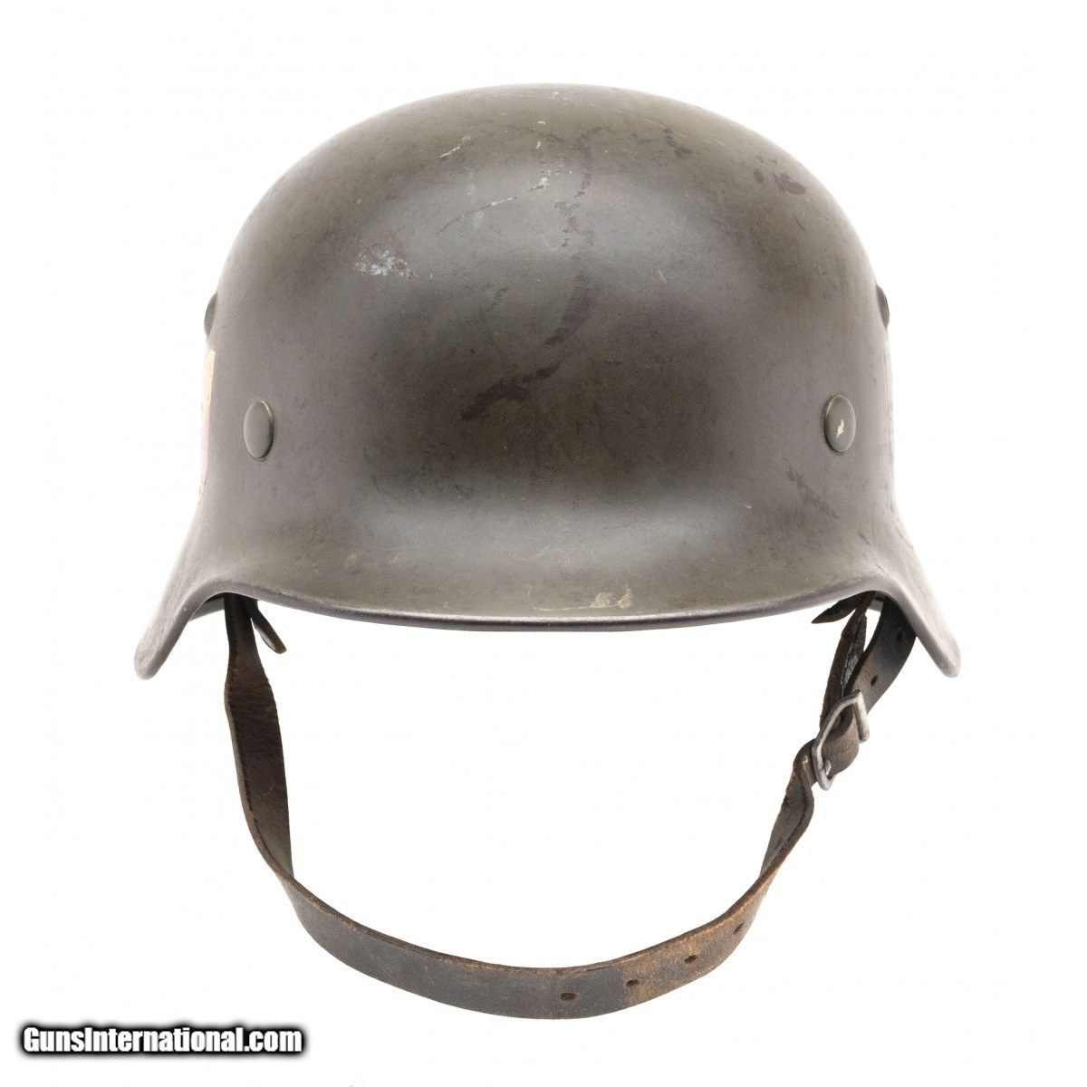 Description: " Scarce Kriegsmarine issued double decal M35 helmet. Size 62. Liner is size 54 and has early style aluminum reinforcement. Batch number 4287. A desirable Kriegsmarine helmet! SOLD |