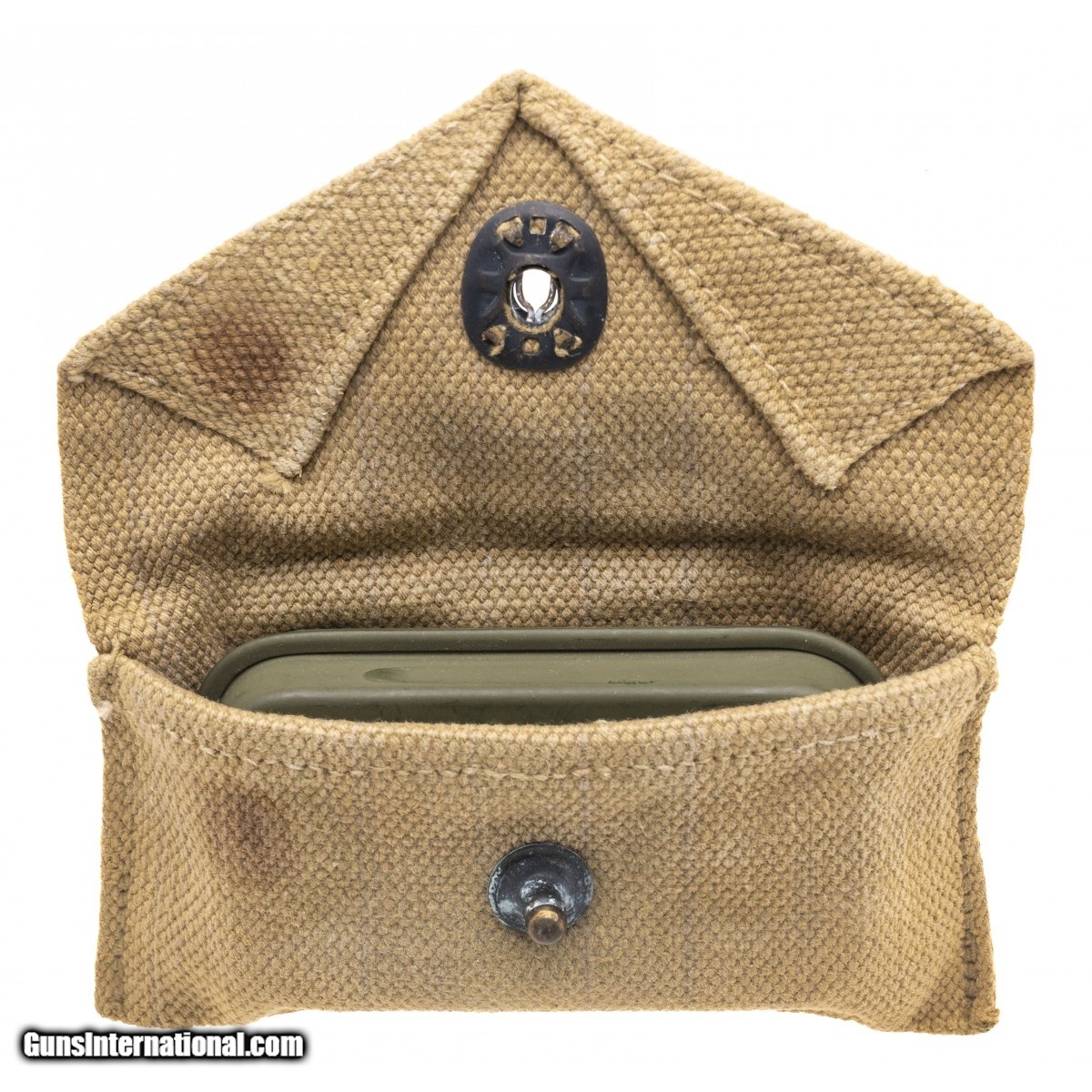 USGI World War II-era khaki Carlisle Bandage Pouch. Overall good condition with a little rust staining on the back.
