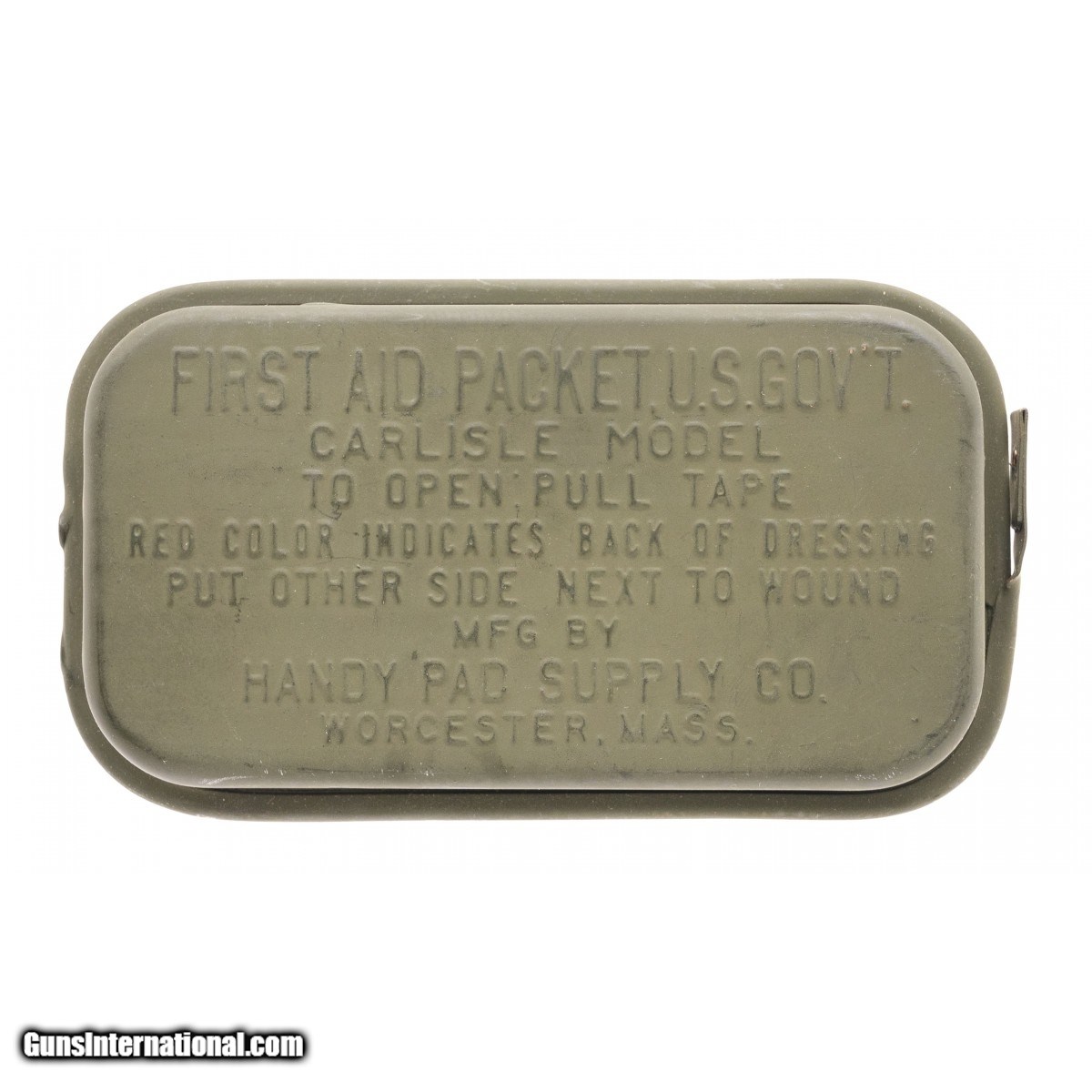 Description: " USGI World War II-era khaki Carlisle Bandage Pouch. Overall good condition with a little rust staining on the back. SOLD |
