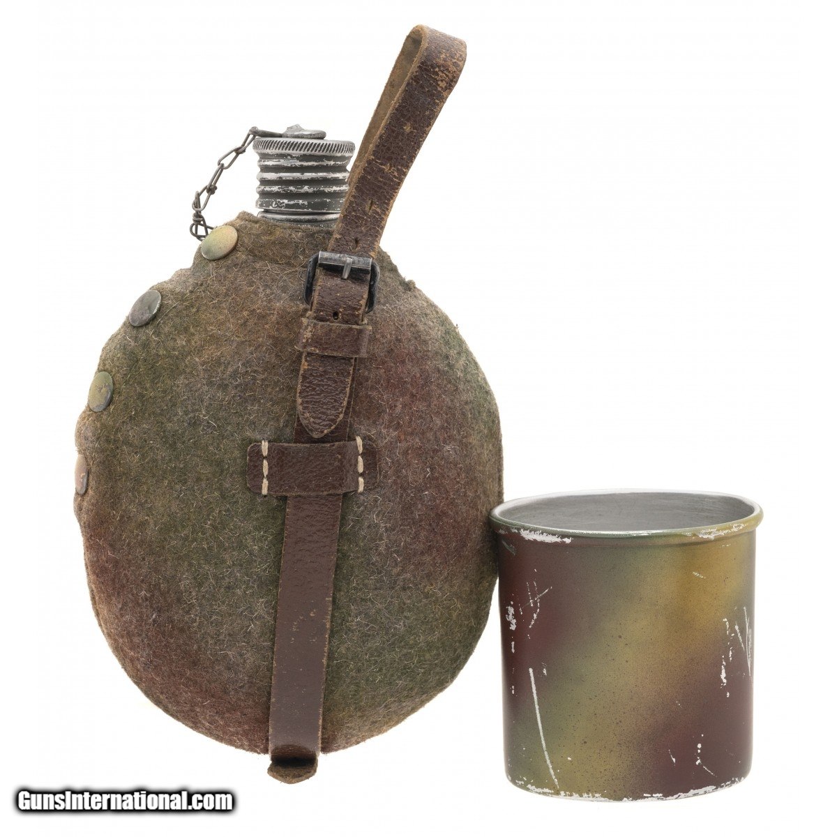 Description: " WWII German Canteen With Drinking Cup and leather Strap And felt cover. SOLD |