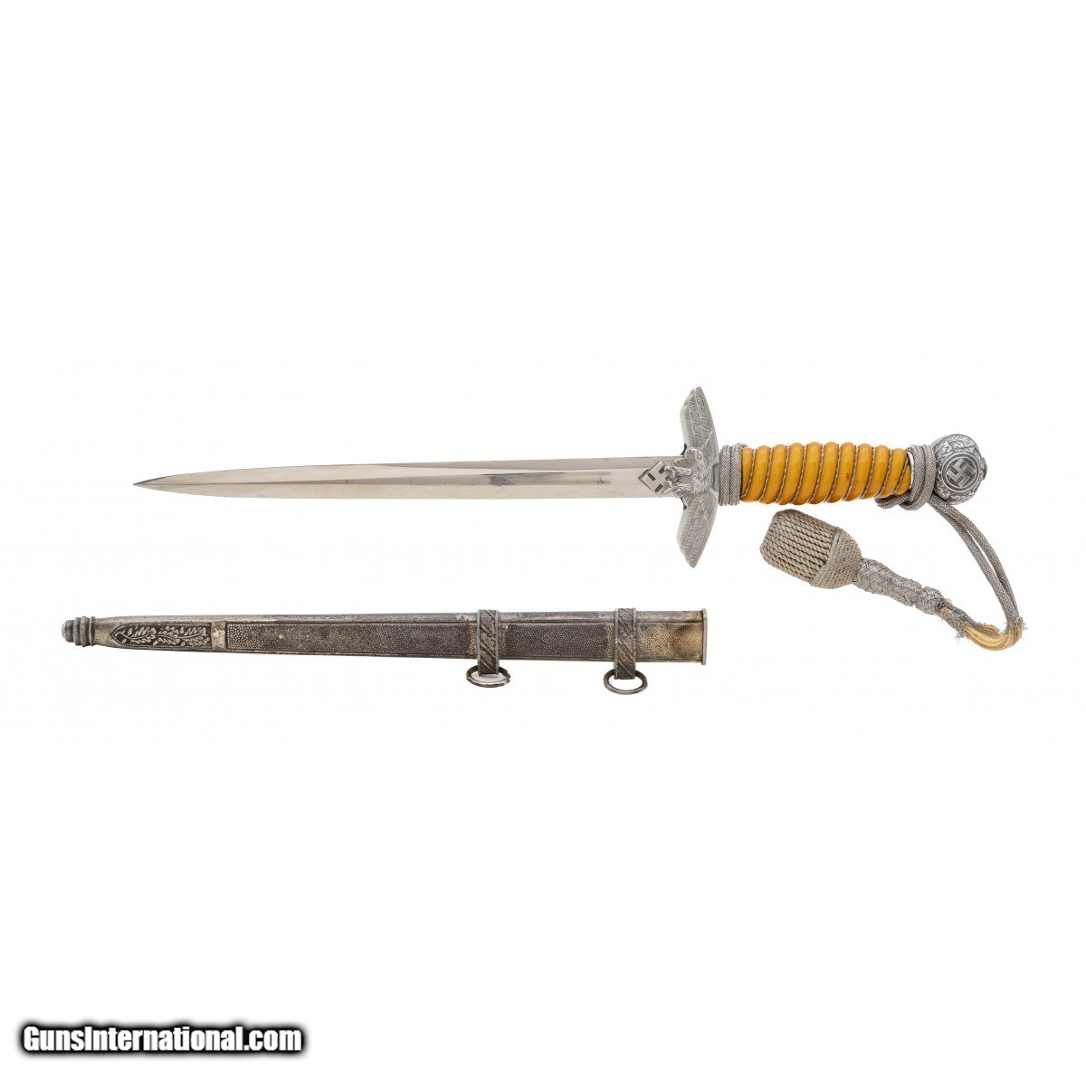 Description: " Luftwaffe Dagger in Very Good Condition with the desirable Pumkin Color Handle. The Bladle is Mint by Paul Weyersberg and also is Luft-Amt Eagle 5. SOLD |