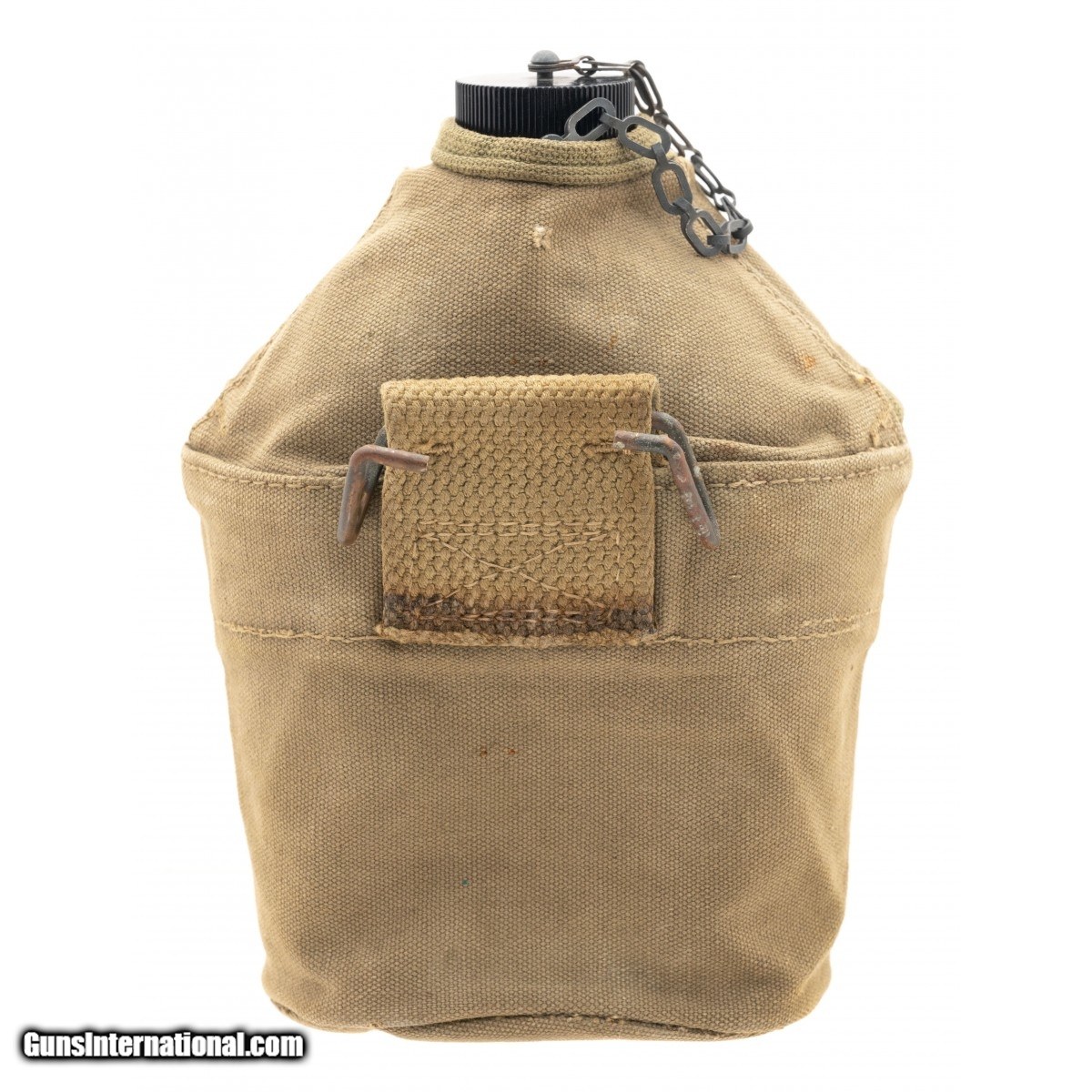 Description: " WWII USMC Porcelain 1942 dated canteen with cross strap pouch. SOLD |