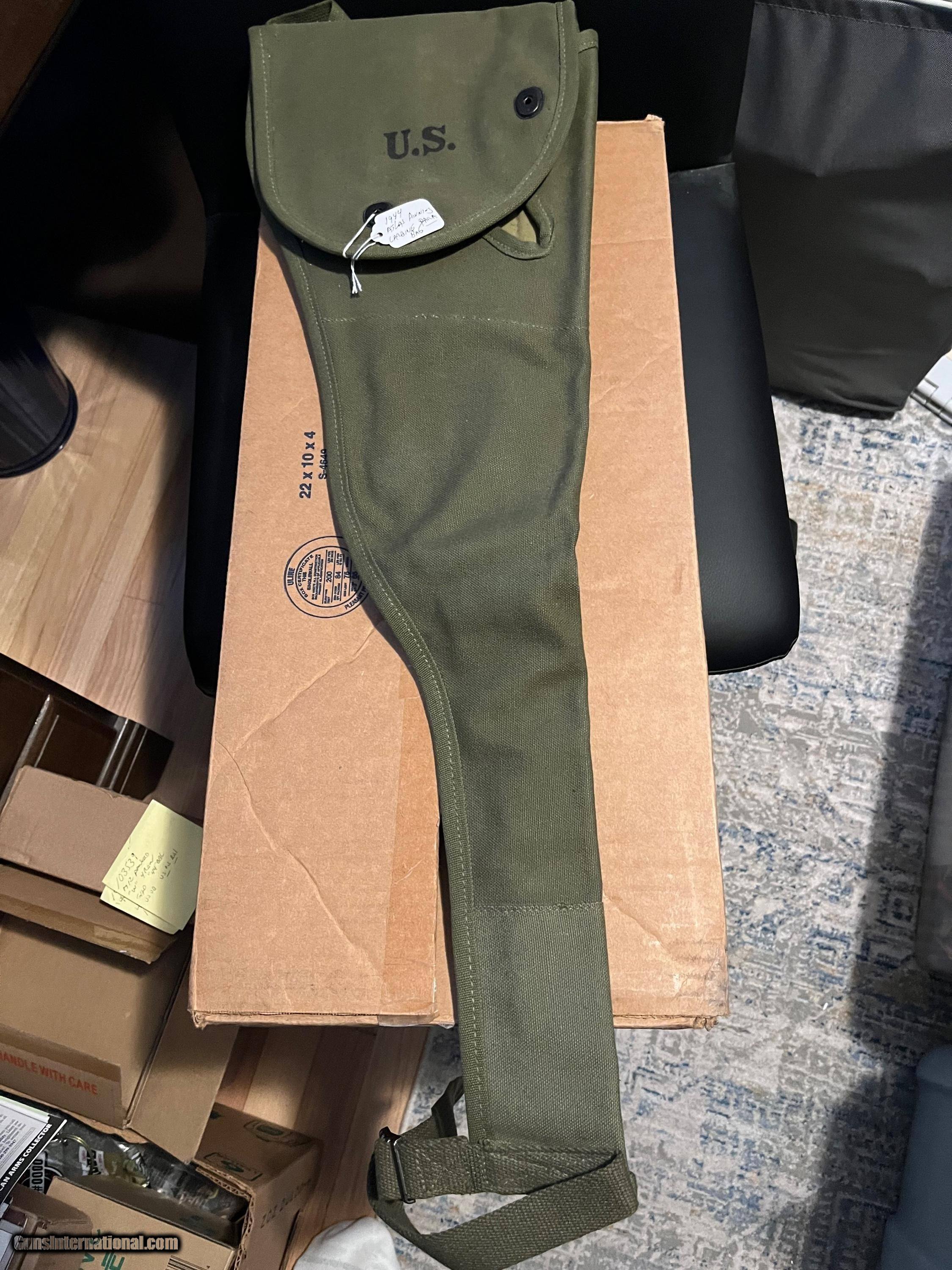 Description: Mint 1944 Atlas Awning M1 Paratrooper Carbine Case Jump Bag. Not a reproduction. Condition is near new. Price: $425.00 Contact Seller |