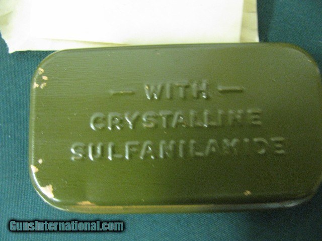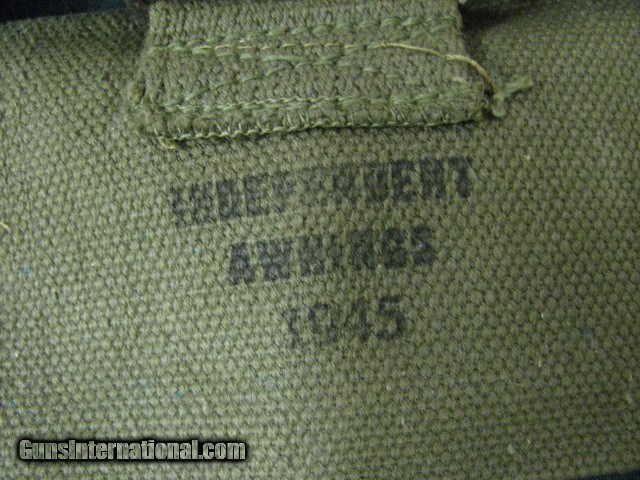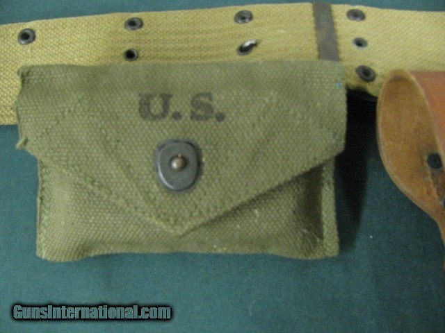 Description: 7052 WW IIbelt:R.M.C.O. 1943 in excellent+condition.Holster:Sears 1942 for 1911A1pistol ex+condition.1911A1.Mag pouch:Hoff mfg co 1942 unused,Two 1911A1mags,one"Scovill mfg.co,one "R" RisdonTool&Machine co.both exc conditon.First Aid Pouch:Inde;pendentAwnings 1945 containing First Aid Packet,U.S Govt Carlisle model both in unused condition. SOLD |
