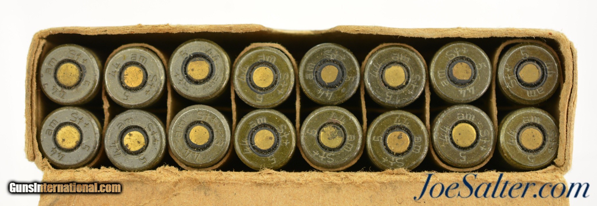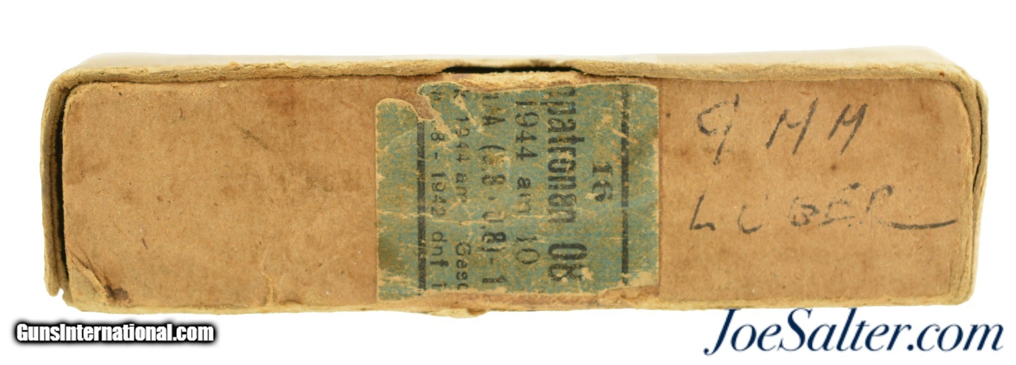 Description: This is an original 16 round sealed box of 9mm ammunition manufactured by Gustloff Werke, Otto Eberhardt Patronenfabrik, Hirtenberg, Niederdonau indicated by the "a m" code on the label. The pack is in fine condition missing part of the original label with some writing. The cartridges are in excellent condition. A now quite scarce original WWII German Ammo packet perfect to pair with your wartime pistol. Price: $85.00 Contact Seller |