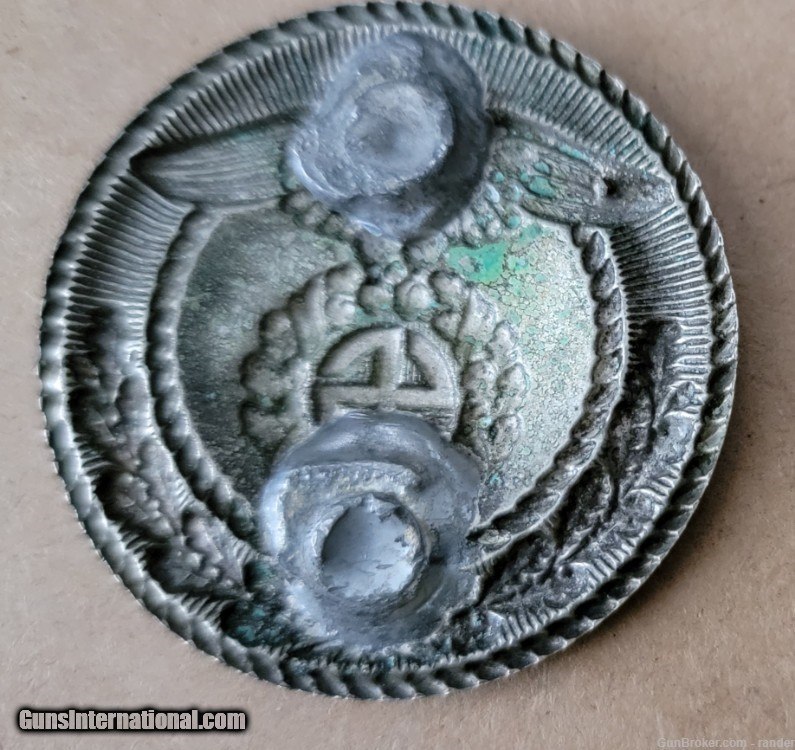 German WW early SA or NSKK aluminum eagle buckle center with sunwheel swastika