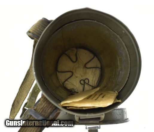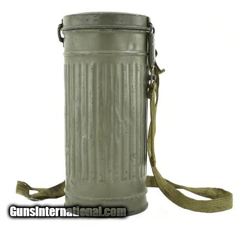 Description: German WWII Gas Mask Canister with Straps. German WWII gas mask canister with straps shows handling wear. Has two extra filters inside. SOLD |