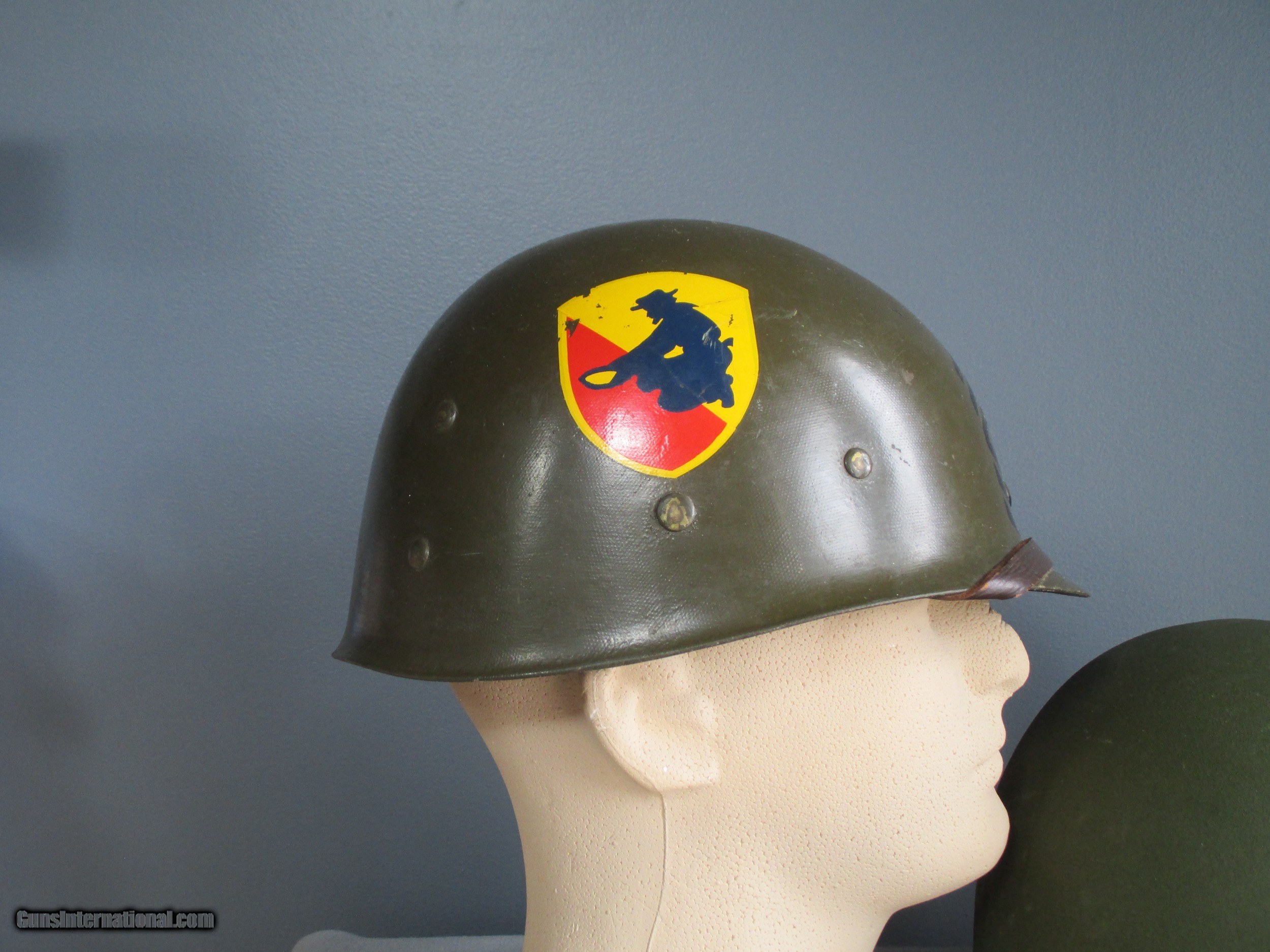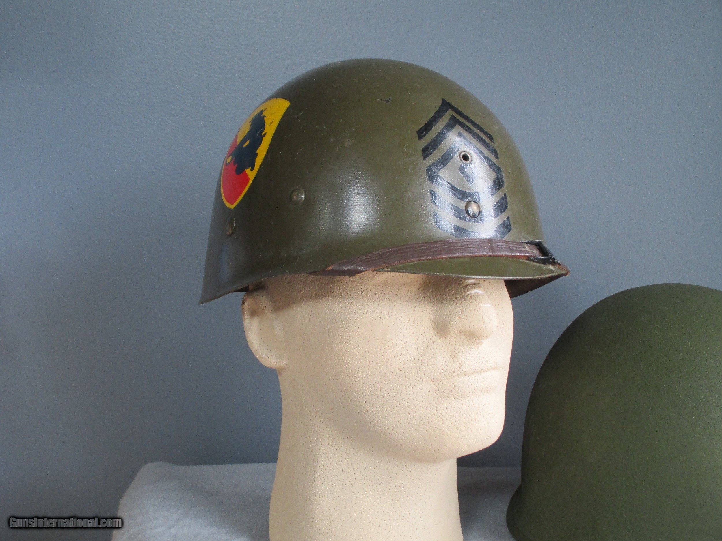 Description: US Army Infantry Helmet and Liner Used by E-8 First Sargeant. WW 2 Liner and early front seam movable bale helmet front seam. Stallion Firearm 810-922-4279. $395.00 plus $25.00 shipping. Postal Money Order will allow me to ship within business days. Tracking will be provided. Call before 7 pm est No Text ! SOLD |