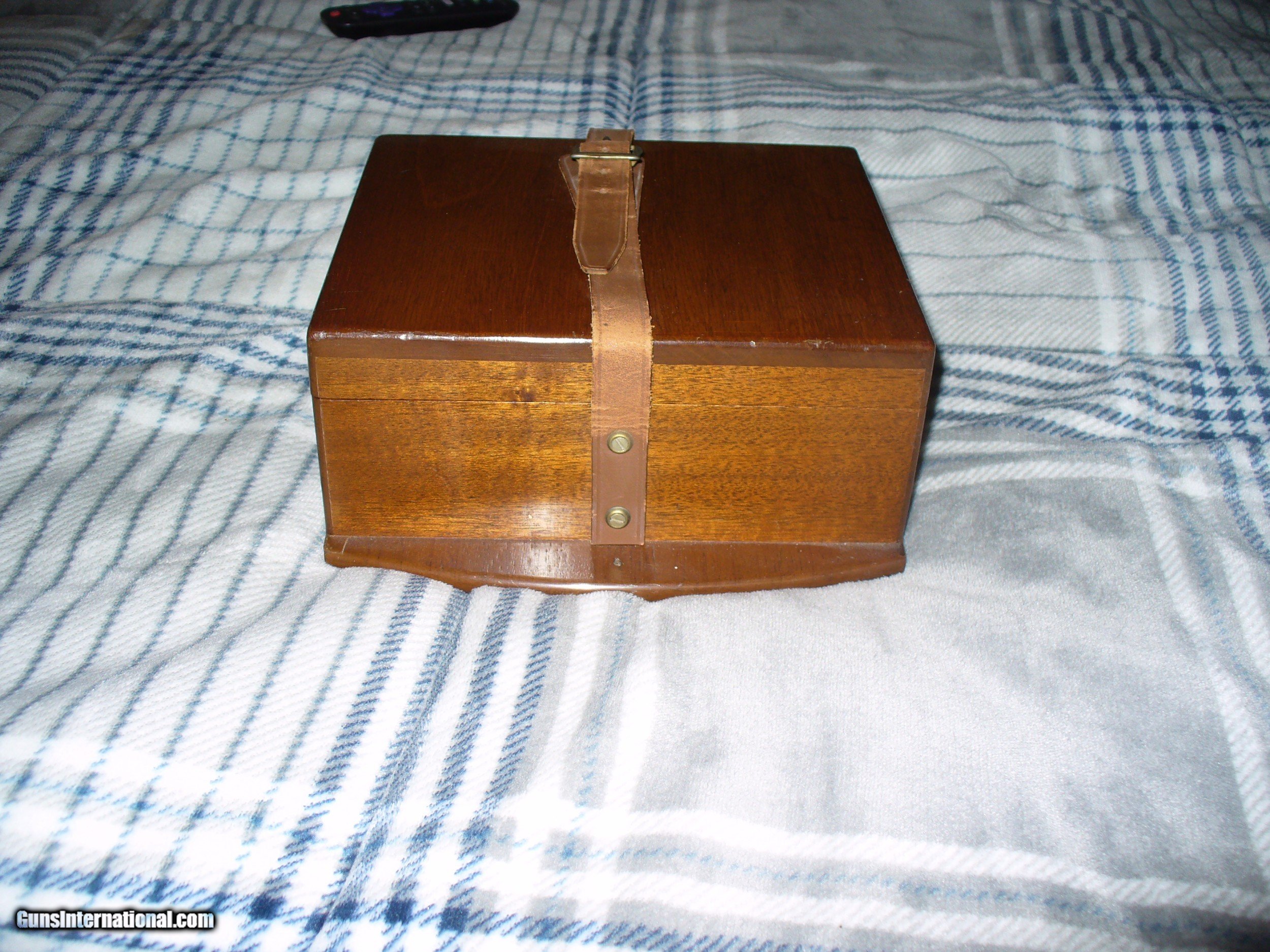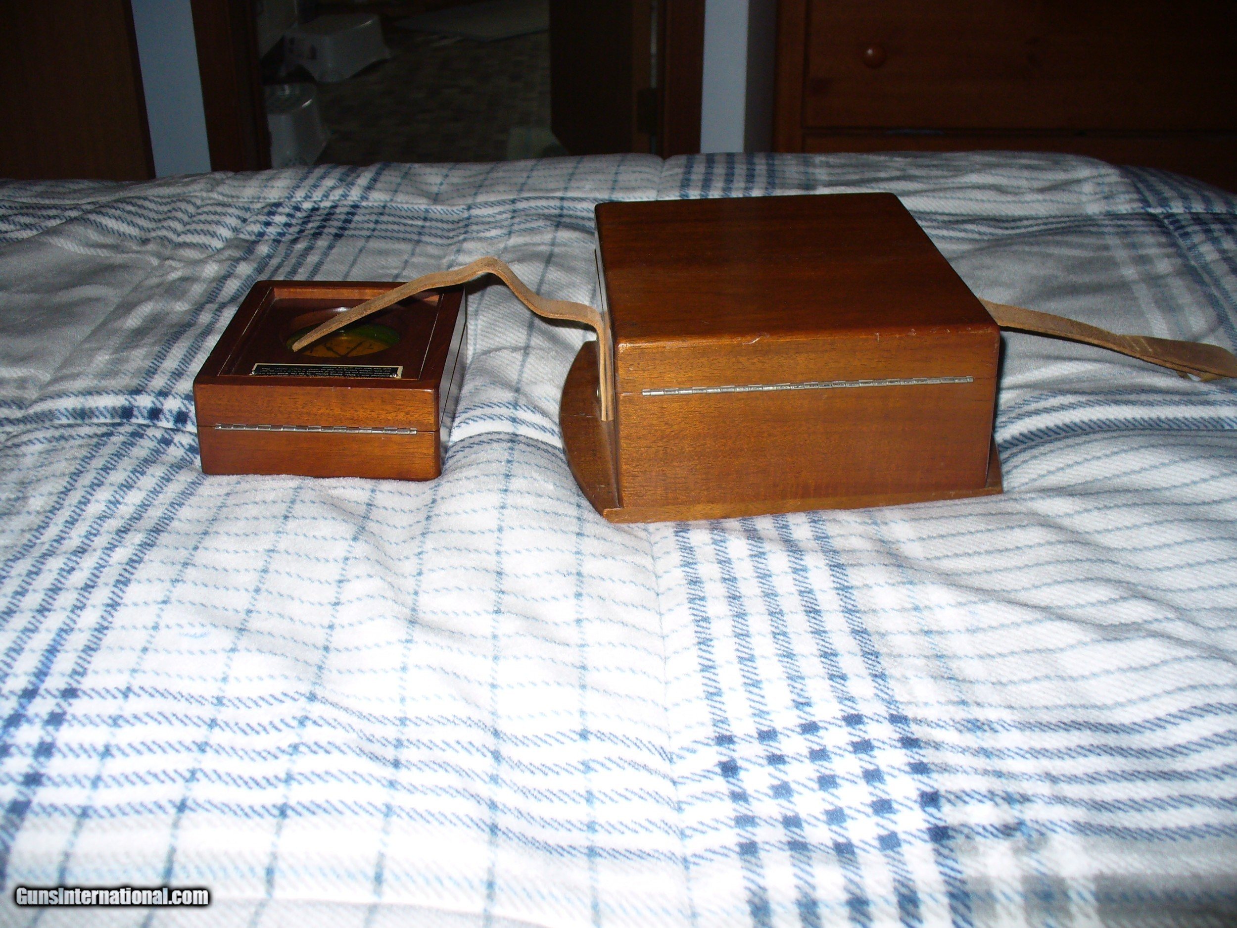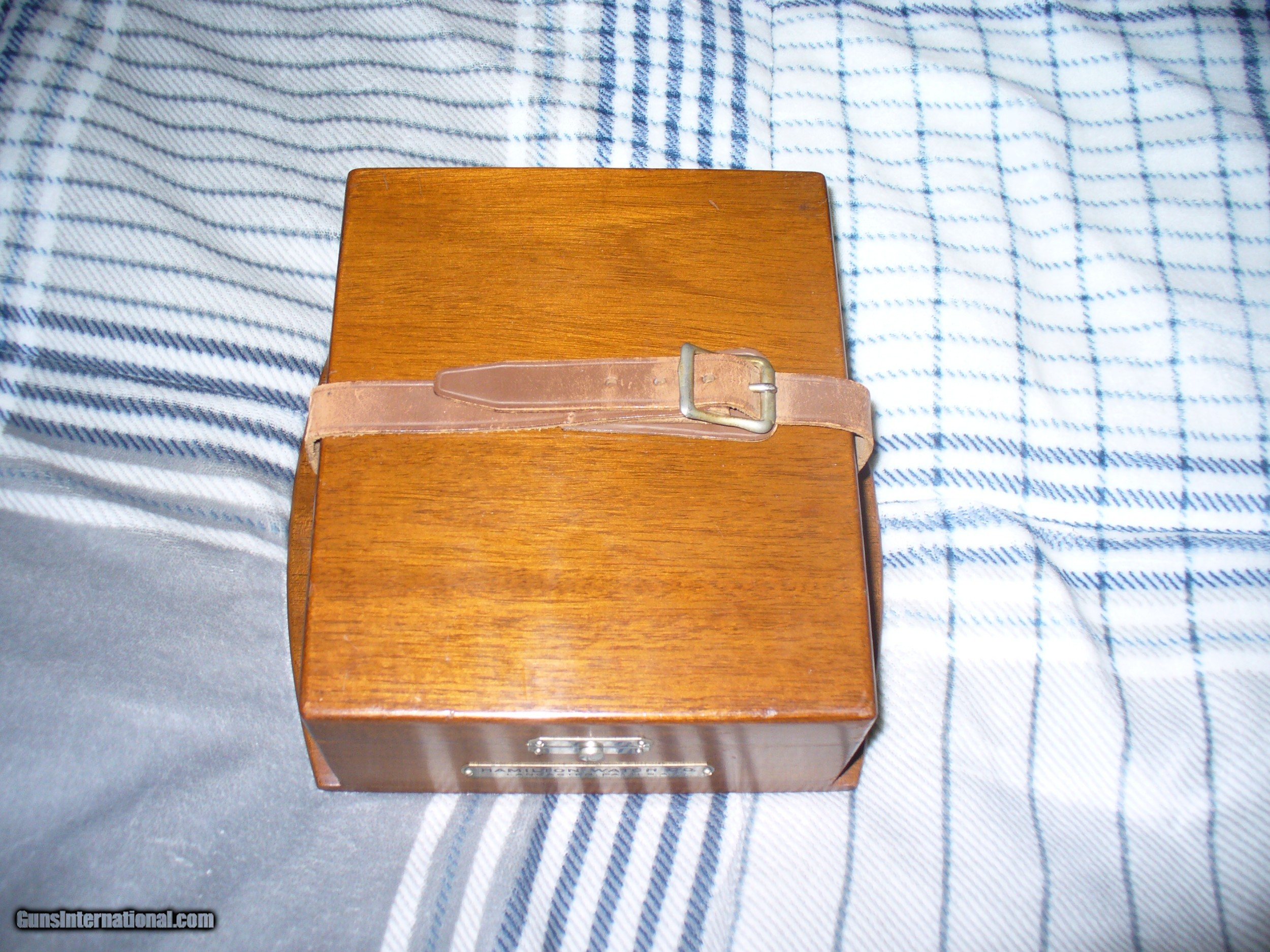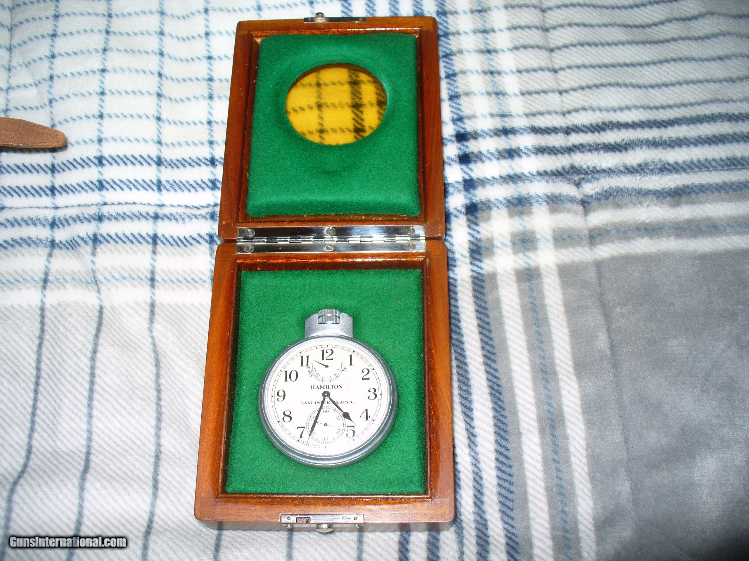 Description: This is a rare opportunity to purchase one of the finest timepieces ever produced in America! This Hamilton Model 22 comes complete with BOTH of its original wood cases in better than excellent condition, the movement is nearly flawless, the case has no scratches or wear of any kind, the crystal is scratch and wear free, the dial and hands are perfect, and the case is marked 'H.S. 2' for the British Hydrogaphical Service and the number '2' which denotes this watch as chronometer grade, meaning that it is suitable for use as a primary navigation aid for longitude. This watch is complete as originally issued given that the serial number on the case and movement are a match. This timepiece runs and keeps excellent time. The US Navy examples were not marked with the serial number of the movement on the case and most examples are not original movement/case pairs; this one is, and it is in such fine condition that it will require a complete NOS example to improve upon it! These Model 22's with Admiralty markings are hard to find in any condition! Don't let this one slip by. Shipping to USA addresses only. SOLD |