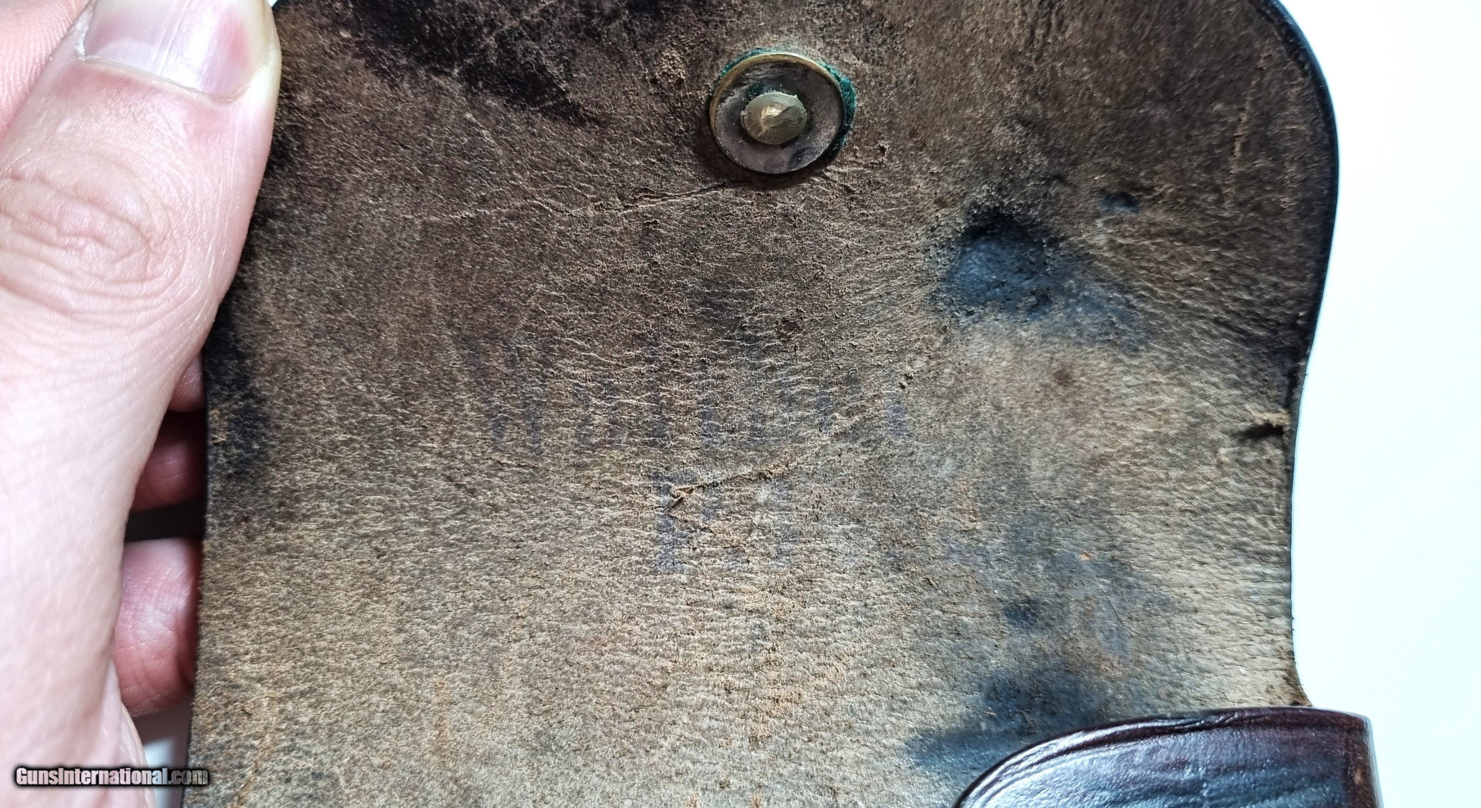 Description: A very nice original almost mint condition, Party Leader holster for the Walther PPK. Stamped correctly with the Party Eagle, DRGM and Akah logo, as well as faintly visible ink stamp of WALTHER PPK on the inside of the flap. Stitching in great condition, with some signs of overall use. Extremely rare Holster! SOLD |