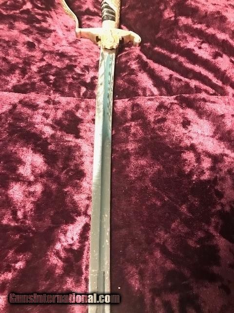 Description: RARE WW2 German Nazi Third Reich Prison Official Eagle head Sword This sword is in very good condition with some light oxidation on the blade in a few spots. It is believed to be an unmarked Clemens & Jung , since that was common with this sword and that particular maker. Please look at pictures for condition Shipping/Insurance is $65.00 (FEDEX) I only ship within the continental US SOLD |