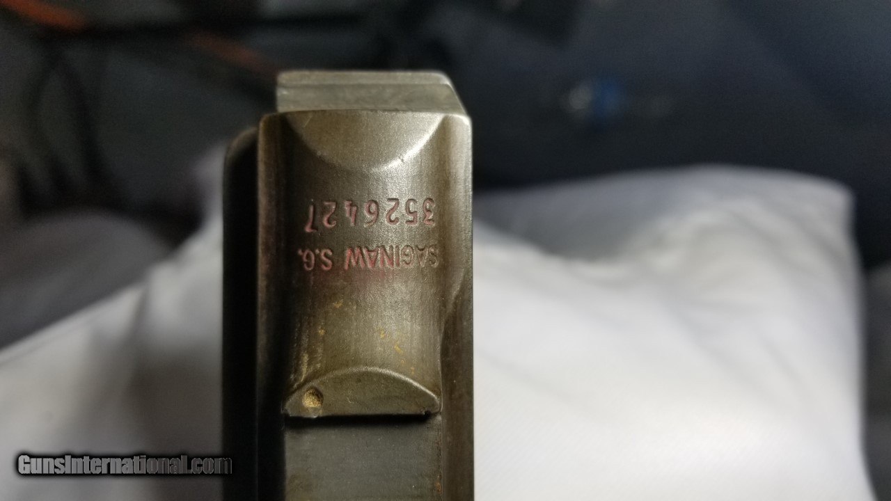 Description: Saginaw S.G M1 receiver and barrel, overall good condition! Serial # 3,526,427 estimated production Sept 1943-Oct 1943 I'm not a dealer, my findings about this receiver has been online and research with a dealer. Please email or call with any questions or if you want more pictures. Must send to FFL, buyer pays transfer fees & shipping SOLD |