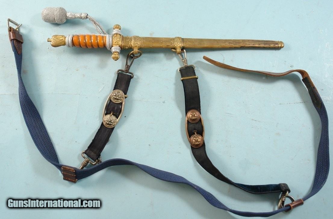 WW2 WWII W.K.C. WKC GERMAN NAVY OFFICER’S DAGGER W/SCABBARD, PORTAPEE, HANGERS AND BELT.