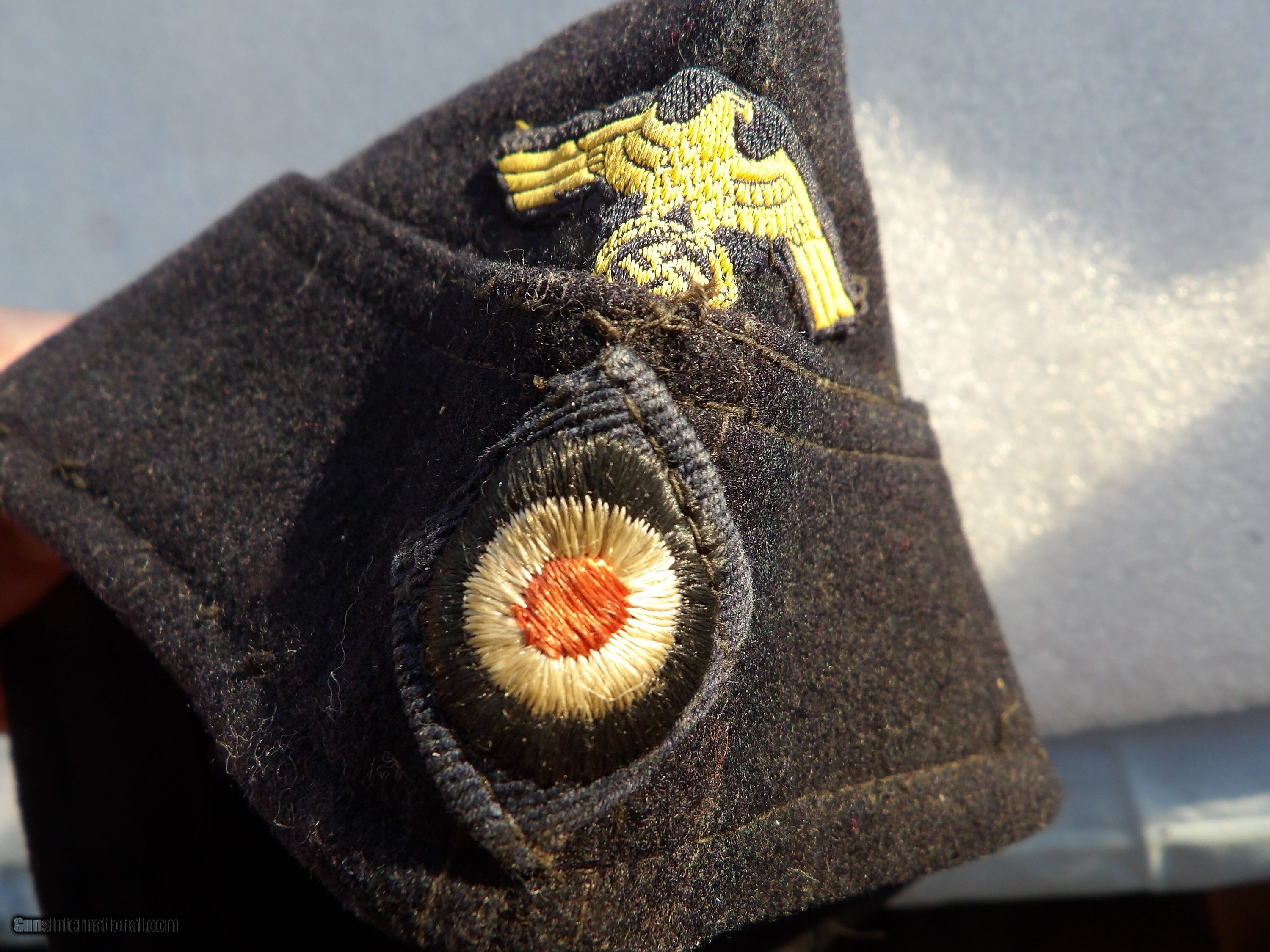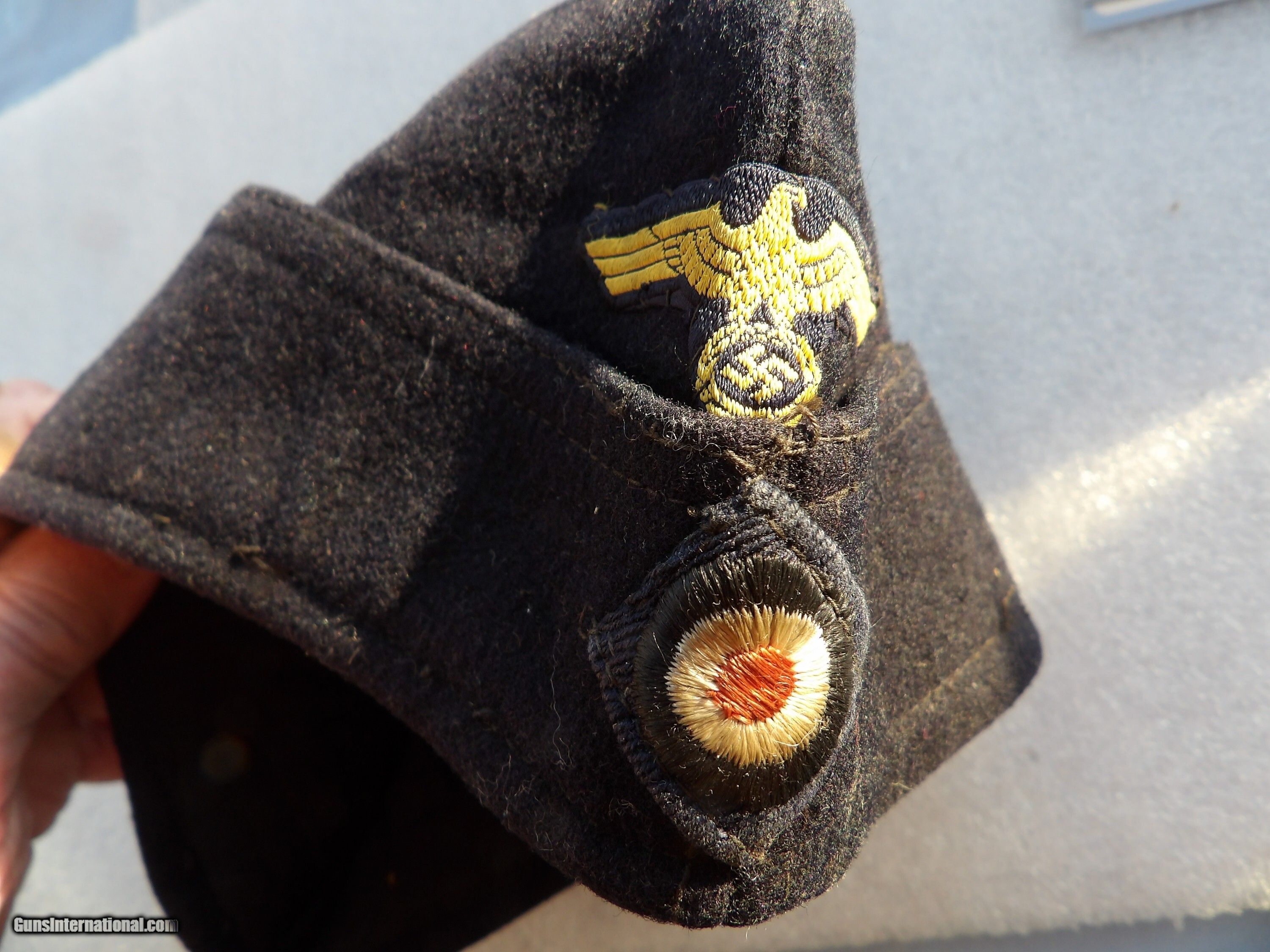 Description: SEE THE PICTURES OF WWII GERMAN NAZI'S KRIEGSMARINE M40 SIDE CAP IN VERY GOOD CONDITION, ALSO KNOWN AS AN OVERSEAS CAP OR "SCHIFFCHEN". THIS TYPE OF HEADGEAR WAS USED BY THE GERMAN NAVY (KRIEGSMARINE) DURINGWORLD WAR II. THE CAP IS MADE OF DARK NAVY BLUE WOOL. IT FEATURES THE NATIONAL EAGLE INSIGNIA EMBROIDEREDBIN GOLDEN YELLOW THREAD, WHICH WAS SPECIFICTO THE KRIEGSMARINE VERSION OF THE EAGLE. A NATIONAL COCKADE IS ALSO VISIBLEON THE FRONT OF THE CAP. THESE CAPS WERE PART OF THE STANDARD UNIFORM FOR ENLISTED PERSONNEL AND SOME AUXILLARIES. PRICE $225 PLUS $12 SHIPPING/INSURAMCE. Price: $225.00 Shipping: $12.00 Contact Seller |