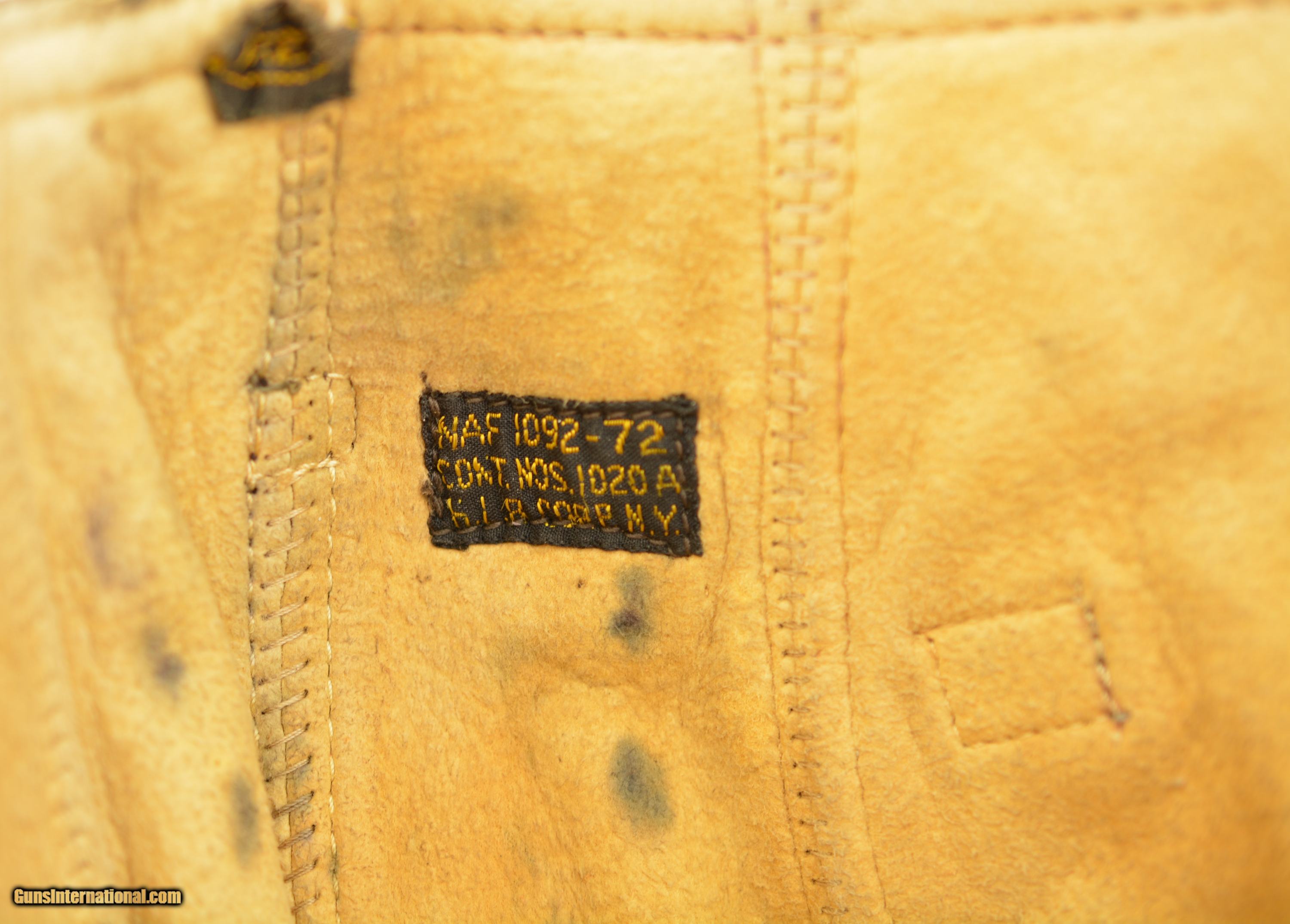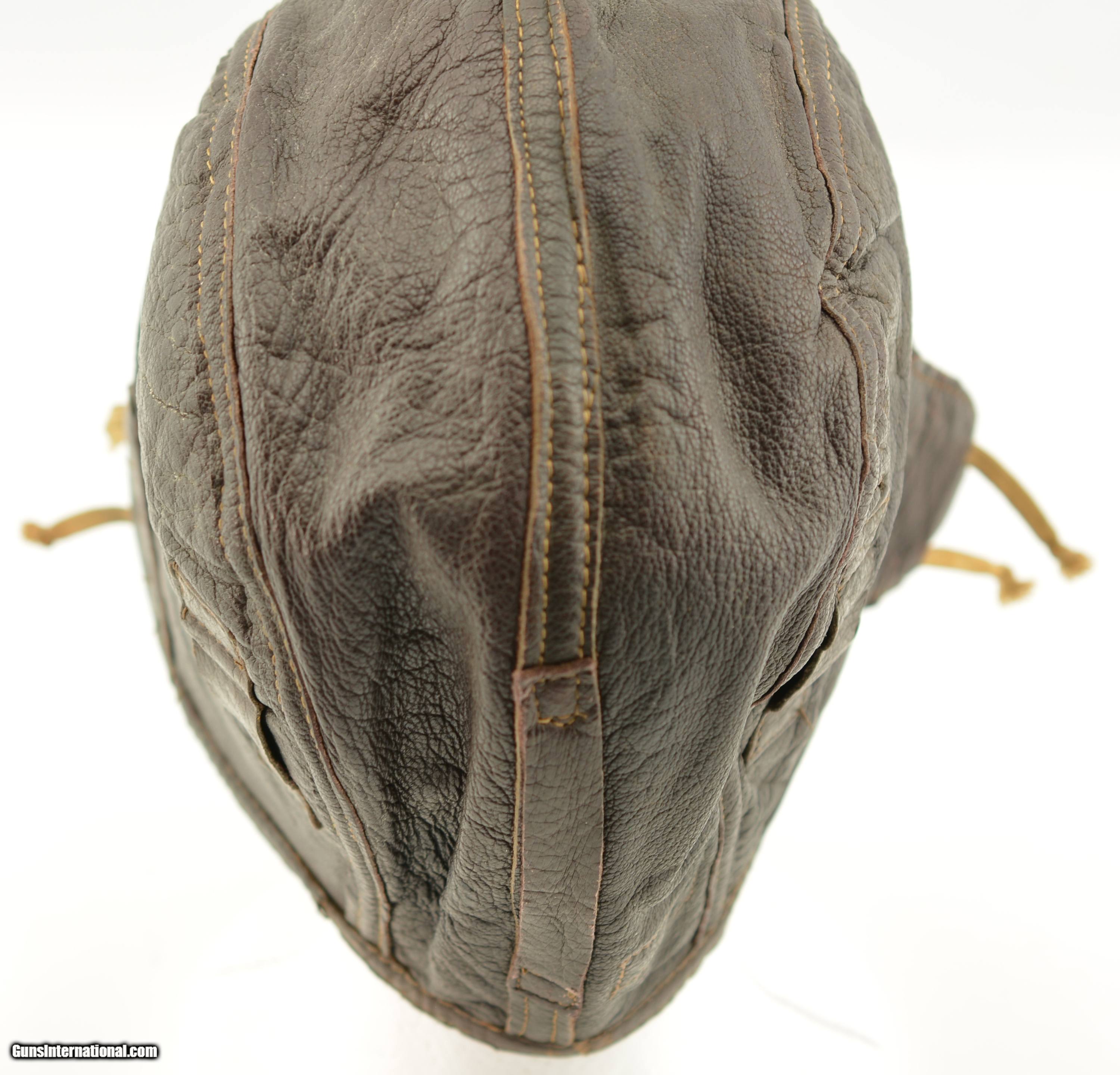 Description: Brown leather flight helmet designed for U.S. Navy pilots in World War Two. Original label is present NAF 1092 - 73 CONT. NOS. 1020 A H.L.B. CORP. N.Y. Interior is lined with chamois which is a soft leather. The size of this helmet is 7 ¼ and still very supple for its age. This helmet is in very good to excellent original condition with rich brown finish with all the extensive stitching in fine and tight shape. This example is missing it chin strap/cup. SOLD Manufacturer: US Military Model: Helmet |