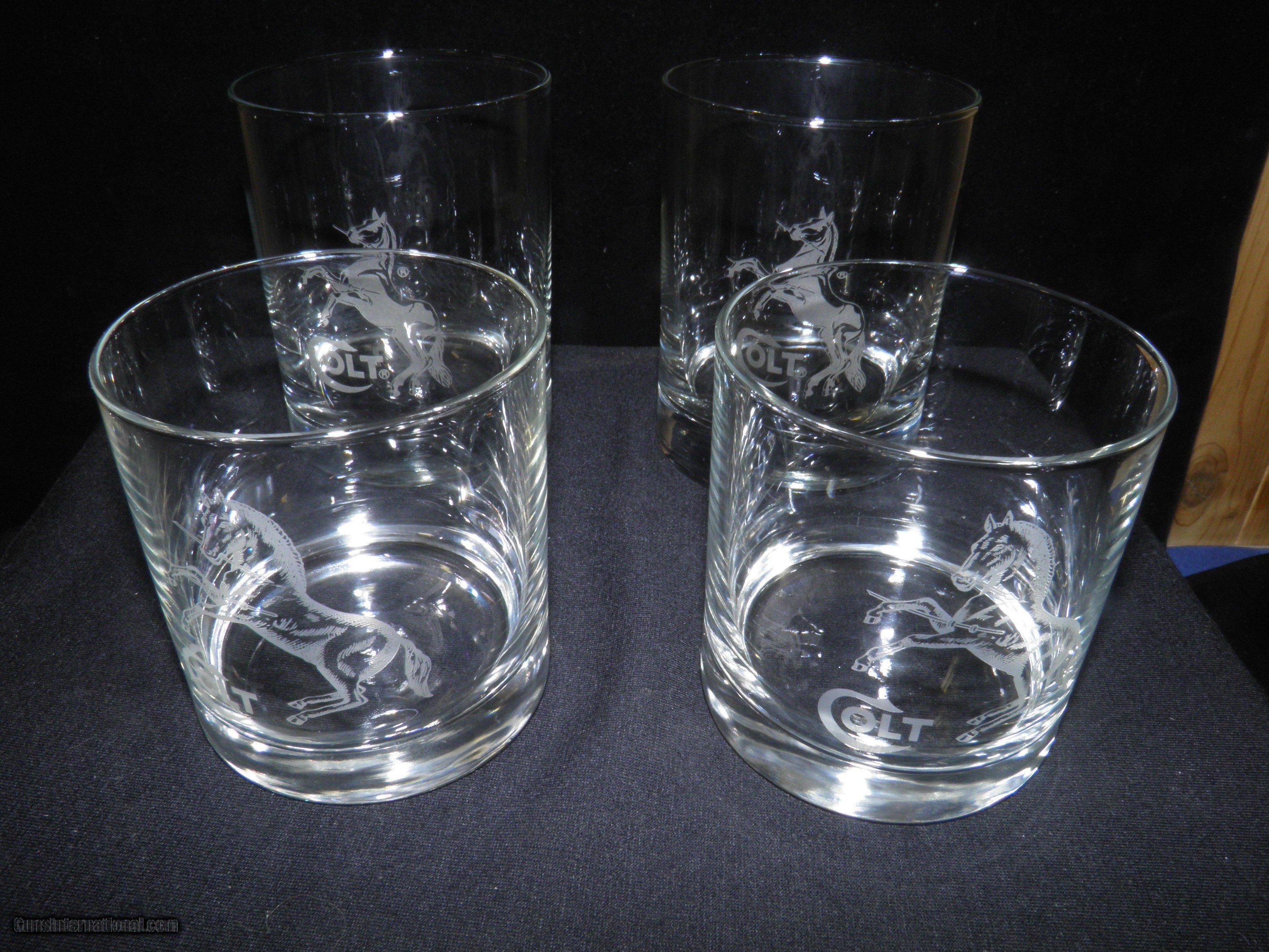 Description: COLT SHOT GLASSES,ITEM # 1, THAT ARE BEAUTIFUL WOOD CASED,WITH A COLT MEDALLION ON TOP. CASE IS MADE OF SOME NICLEY GRAINED EUROPEAN WALNUT, ENCLOSED ARE FOUR SHOT GLASSES THAT RESEMBLE SHOT GUN SHELLS, COLT LOGO ETCHED ON FRONT, WITH GOLD TRIM ON THE BOTTOM. COLT SALES MANGER BILL JUDD, HAD PRODUCED A LIMITED NUMBER OF SIX. THESE WERE GIVEN OUT AS GIFTS, TO A SELECT FEW SALES STAFF EMPOLYES. THERE ARE ONLY SIX SETS OUT THERE, HERE IS ONE OF THEM YOU CAN OWN! AGAIN ANOTHER RARE AND FINE PEICE OF COLT GLASSWARE.$289.95 ITEM # 2 SET OF FOUR TUMBLER GLASSES THAT WERE SOLD BY COLT IN 1984. COLT ETCHED LOGO AND RAMPART HORSE ON FRONT, GLASSES MEASURE 6" HIGH, TOTAL OF FOUR $129.95, "SOLD" ITEM # 3 SET OF FOUR ROCKS GLASSES, THAT MATCH THE TUMBLER SET, THESE ALSO WERE SOLD BY COLT IN 1984, TWO DIFFERENT SIZES , 2 ROCKS GLASSES THAT MEASURE 3 1/2" HIGH, AND TWO THAT PREFERE HAVING A DOUBLE THAT MEASURE 4 1/4" HIGH. TOTAL OF FOUR $124.95 "SOLD SOLD |
