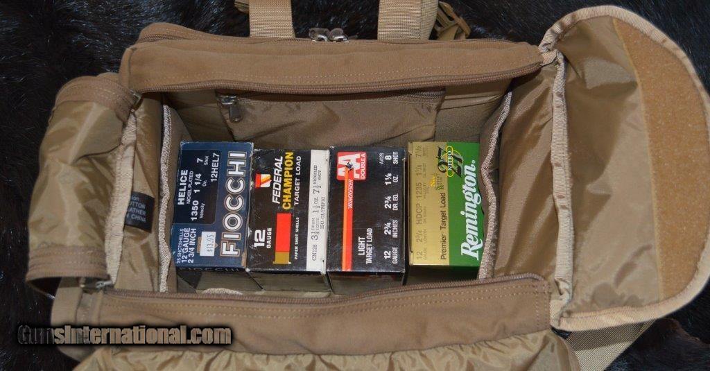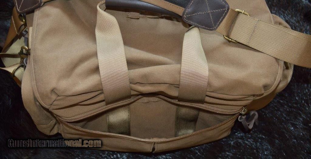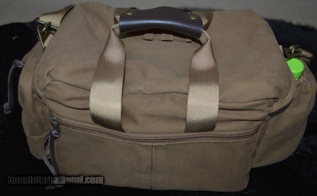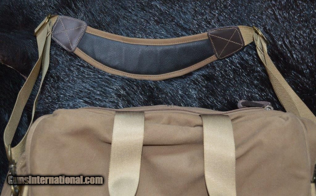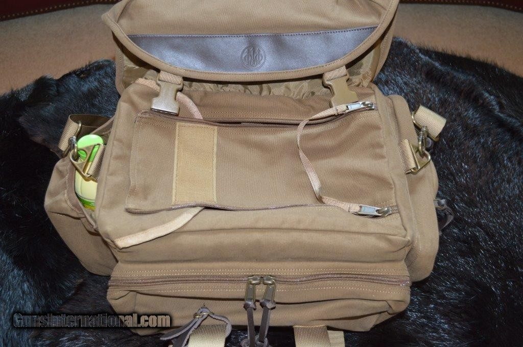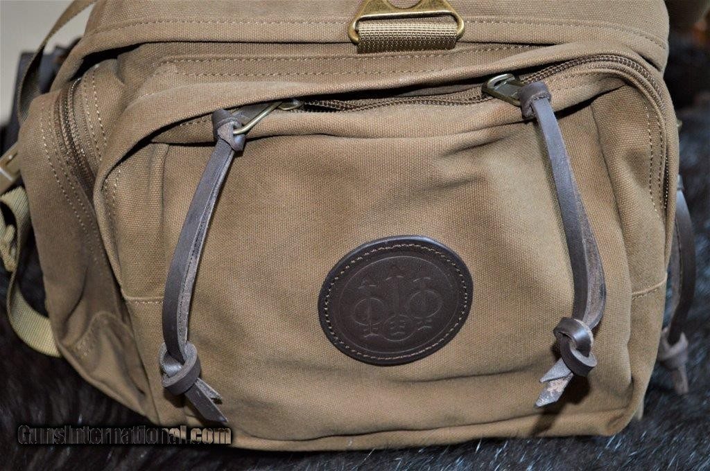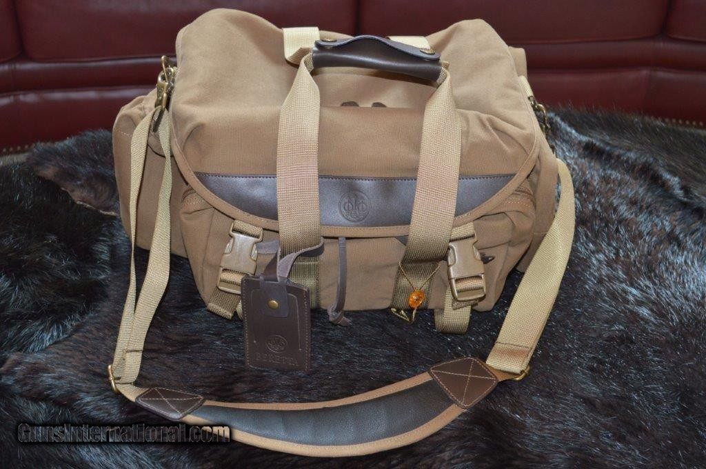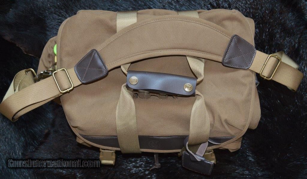 Description: SOLD Pending Funds *** This is a brand new Beretta Field bag to keep all of your sporting, upland or waterfowl hunting/shooting gear dry and organized. Plenty of pockets inside and out with its 17" x 9" x 11" size. it has all-brass hardware with an antique finish; a leather carry handle; and a comfort-curved, fully adjustable anti-slip shoulder strap. There is also a leather I.D. luggage tag. SOLD |
