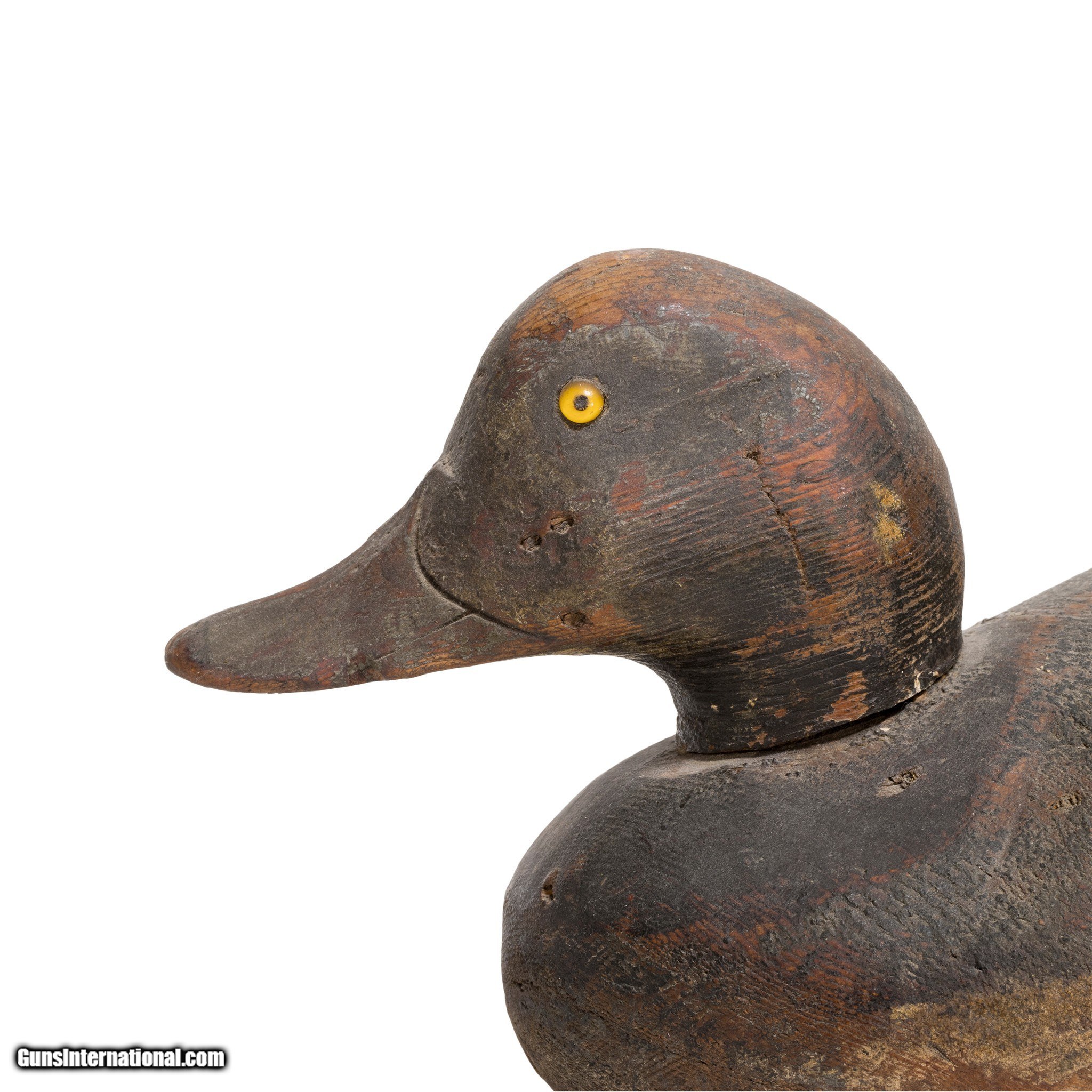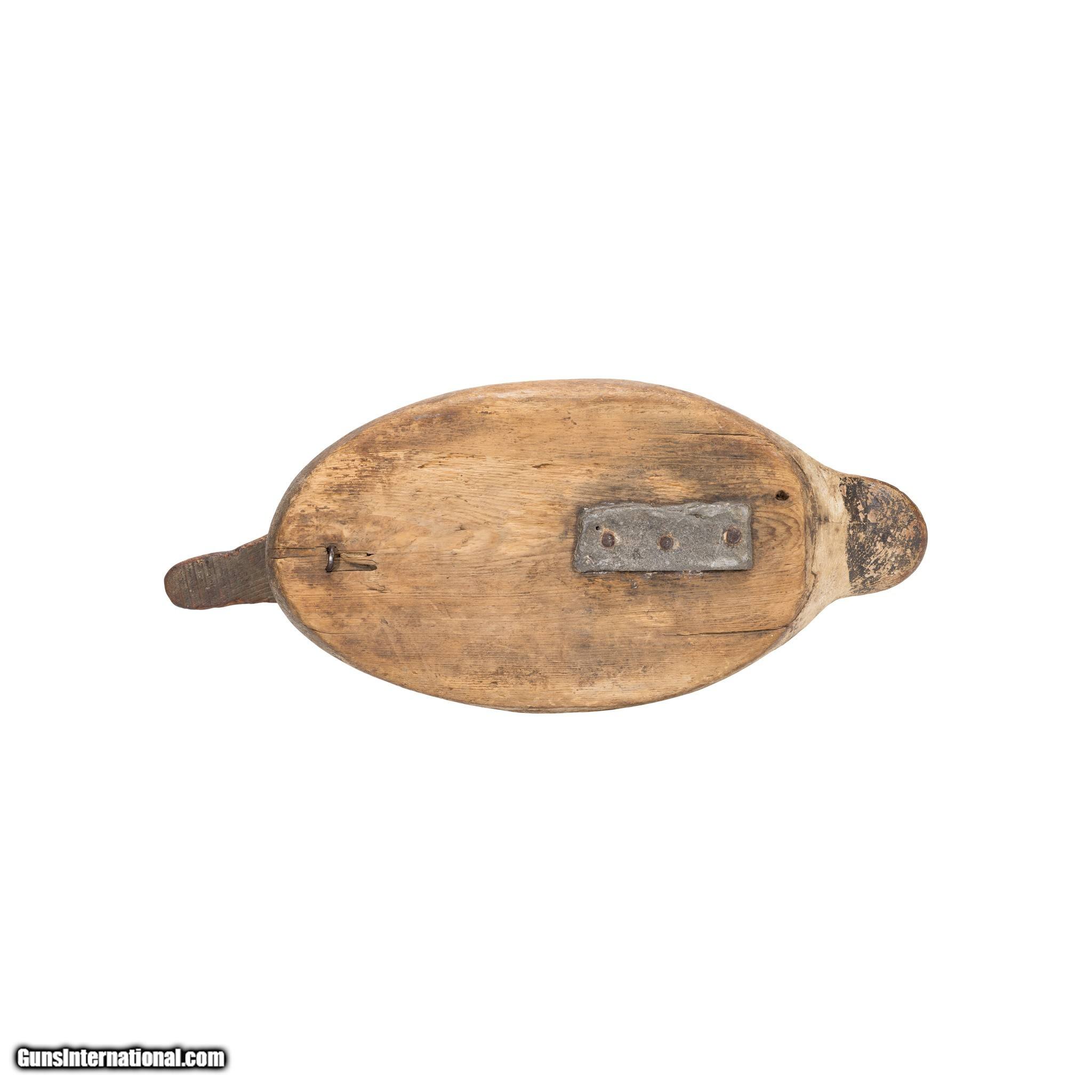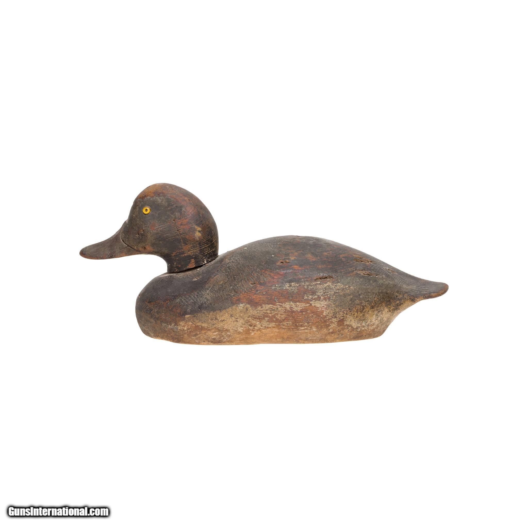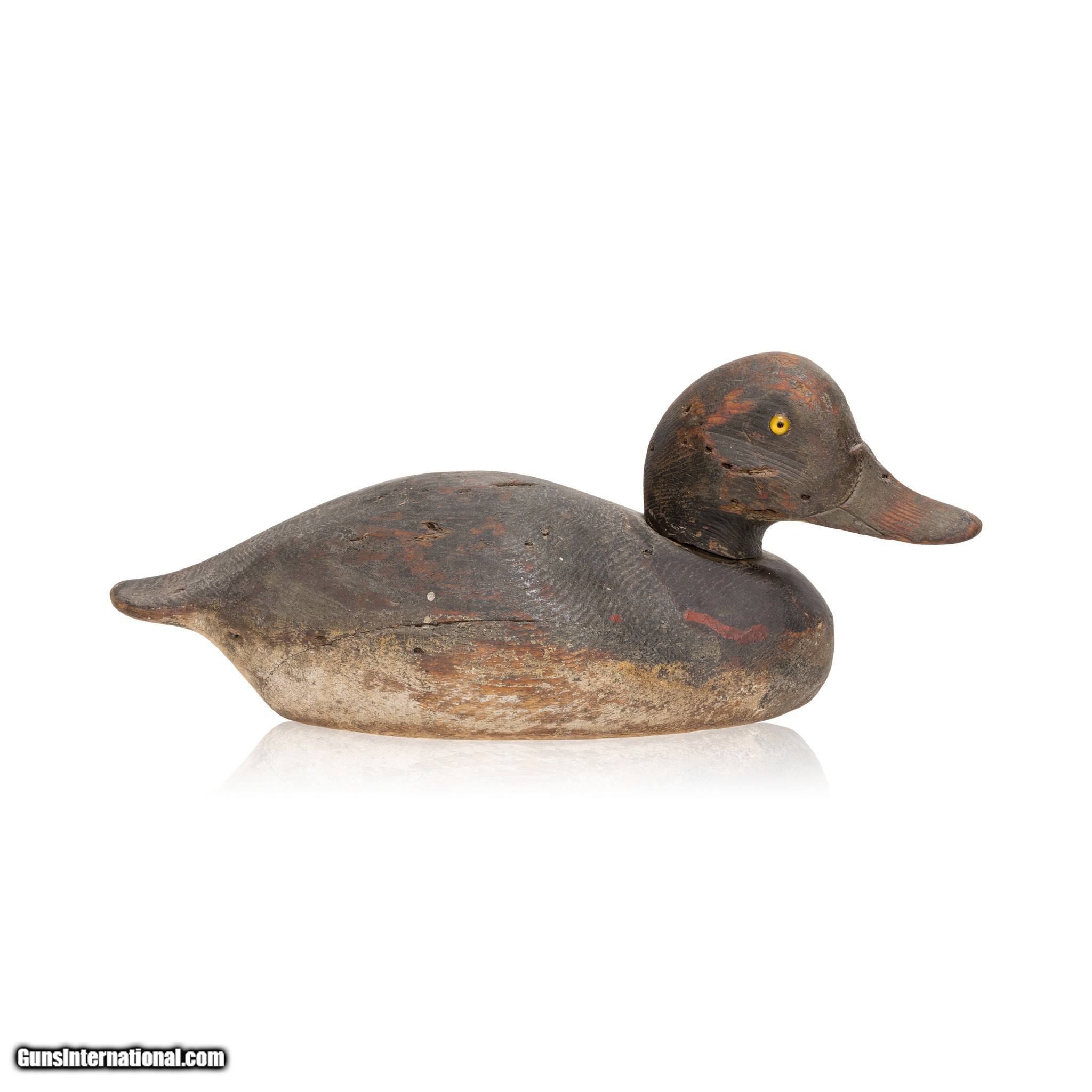 Description: Bluebill drake duck decoy with glass eyes. Much used. Hunted over, shot holes. Well carved and painted piece that shows age and use. Would make a great addition to a decoy or sporting goods collection, or would display nicely in a vintage or rustic home, hunting lodge, or cabin. Made in Michigan during the 1920's. Size: 13" Family Owned & Operated Cisco’s Gallery deals in the rare, exceptional, and one-of-a-kind pieces that define the history of America and the Old West. Our pieces range from American Indian to Cowboy Western and include original items of everyday life, commerce, art, and warfare that tamed America’s frontier. Our 14,000 square foot gallery opened in 1996 in beautiful Coeur d’Alene, Idaho. Personal Service Cisco’s operates on old fashioned values – honesty and integrity, and all of our items are backed by our money back guarantee. We appreciate the opportunity to earn your business. Whether you desire assistance with a jewelry purchase, choosing a gift, identification, or even selling – we hope to be your trusted source. SOLD |
