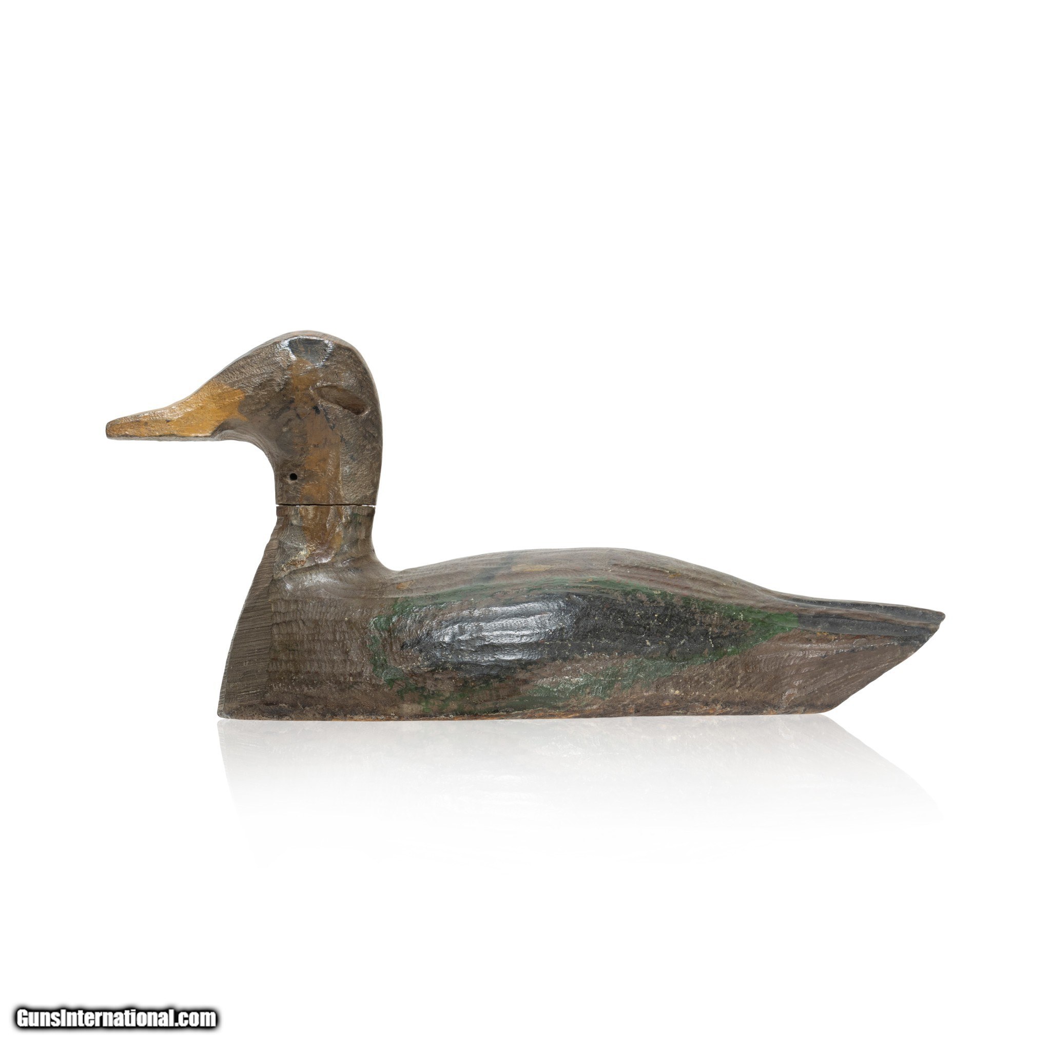 Description: Vintage greenwing teal decoy. A decorative piece, handcarved with interesting shape and bright paint. Would look great on display in a sporting good or hunting collection, or on display in a rustic Western style cabin or lodge. Size: 12"L x 5 1/2"H x 4 1/2"W Family Owned & Operated Cisco’s Gallery deals in the rare, exceptional, and one-of-a-kind pieces that define the history of America and the Old West. Our pieces range from American Indian to Cowboy Western and include original items of everyday life, commerce, art, and warfare that tamed America’s frontier. Our 14,000 square foot gallery opened in 1996 in beautiful Coeur d’Alene, Idaho. Personal Service Cisco’s operates on old fashioned values – honesty and integrity, and all of our items are backed by our money back guarantee. We appreciate the opportunity to earn your business. Whether you desire assistance with a jewelry purchase, choosing a gift, identification, or even selling – we hope to be your trusted source. SOLD |