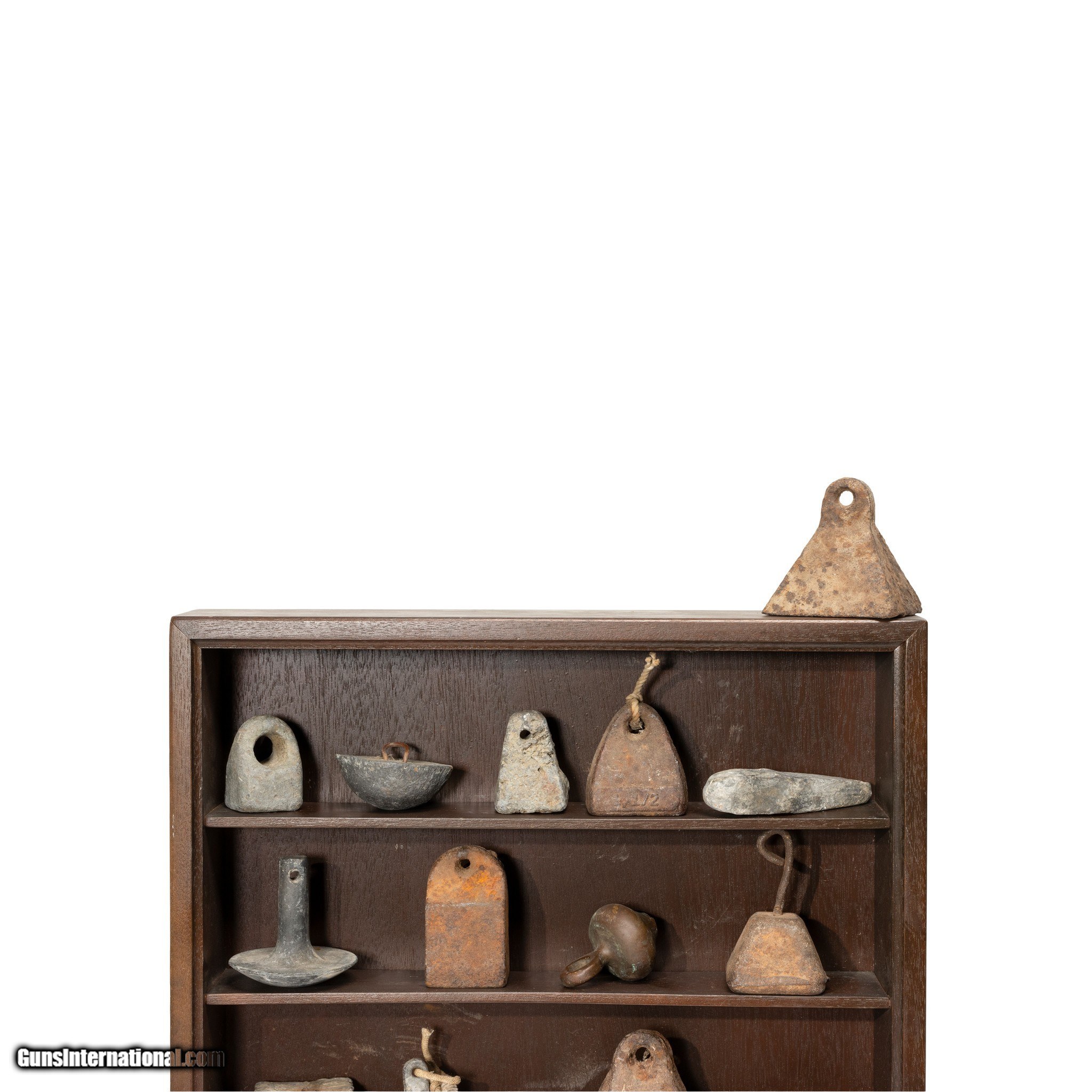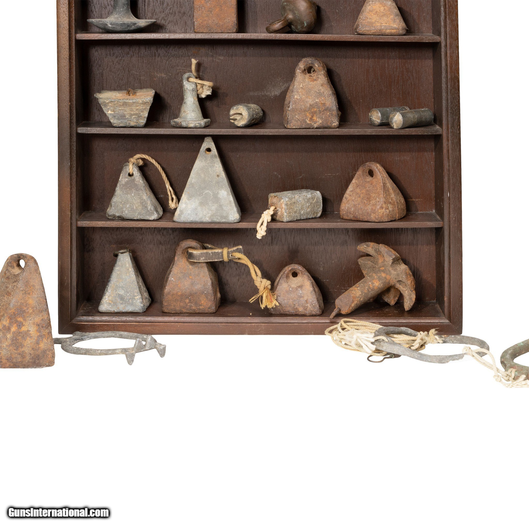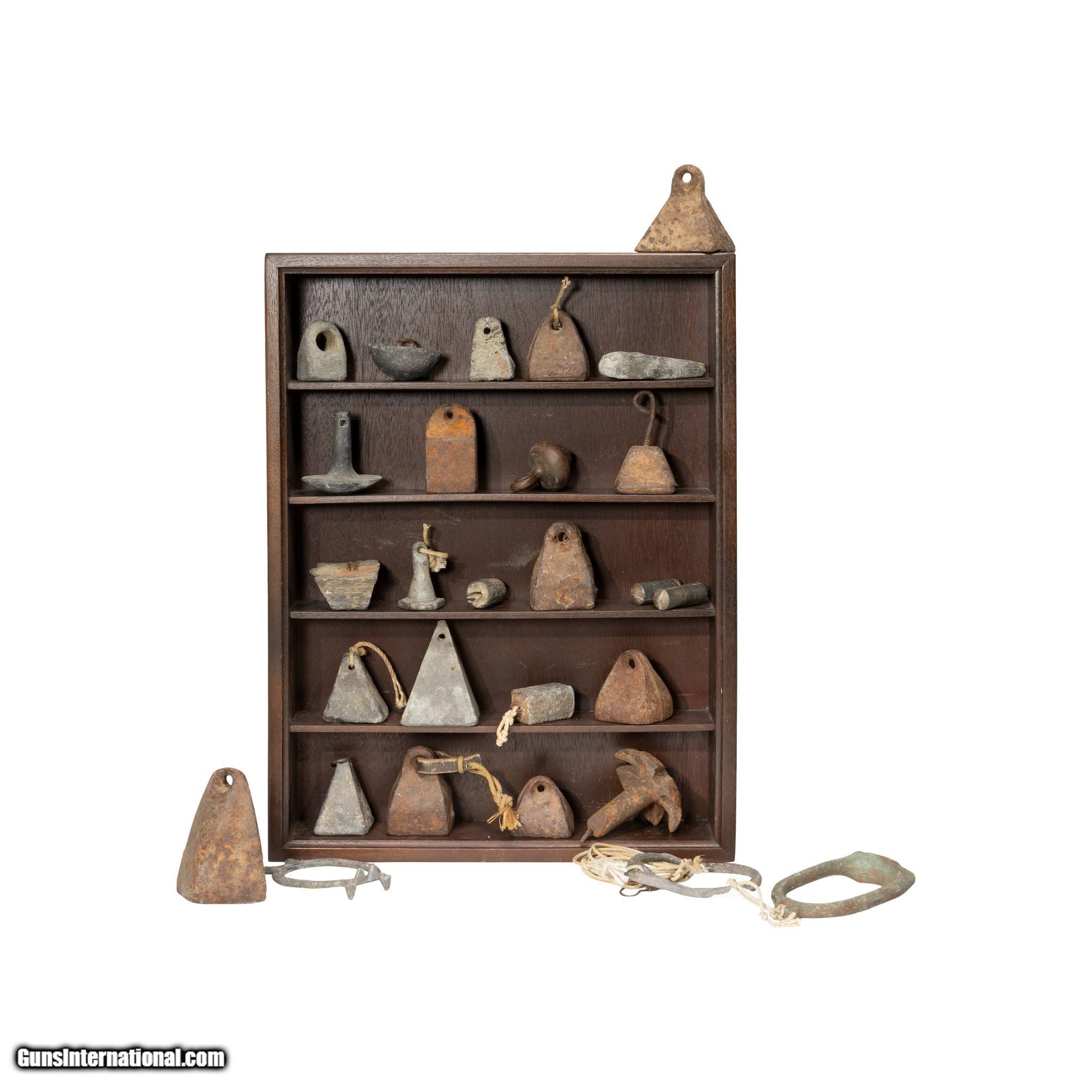 Description: Collection of iron gunning decoy weights with display shelf comprised of 27 decoy gunning weights all different. Several cast at the Saunders Foundry in Elizabeth City, North Carolina. These weights are early examples. All have been used in waterfall hunts many decades ago. Weights total 40 pounds. Accompanied by a display shelf. Shelf 22" x 17" x 4". A very rare collection assembled early in the 20th Century. Family Owned & Operated Cisco’s Gallery deals in the rare, exceptional, and one-of-a-kind pieces that define the history of America and the Old West. Our pieces range from American Indian to Cowboy Western and include original items of everyday life, commerce, art, and warfare that tamed America’s frontier. Our 14,000 square foot gallery opened in 1996 in beautiful Coeur d’Alene, Idaho. Personal Service Cisco’s operates on old fashioned values – honesty and integrity, and all of our items are backed by our money back guarantee. We appreciate the opportunity to earn your business. Whether you desire assistance with a jewelry purchase, choosing a gift, identification, or even selling – we hope to be your trusted source. SOLD |