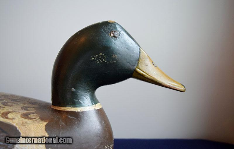 Description: Mallard Drake Wooden Duck Decoy by Robert Elliston, Bureau Illinois, Hollow Body, Restored Paint & Bill Repair, Circa 1910. SOLD |
